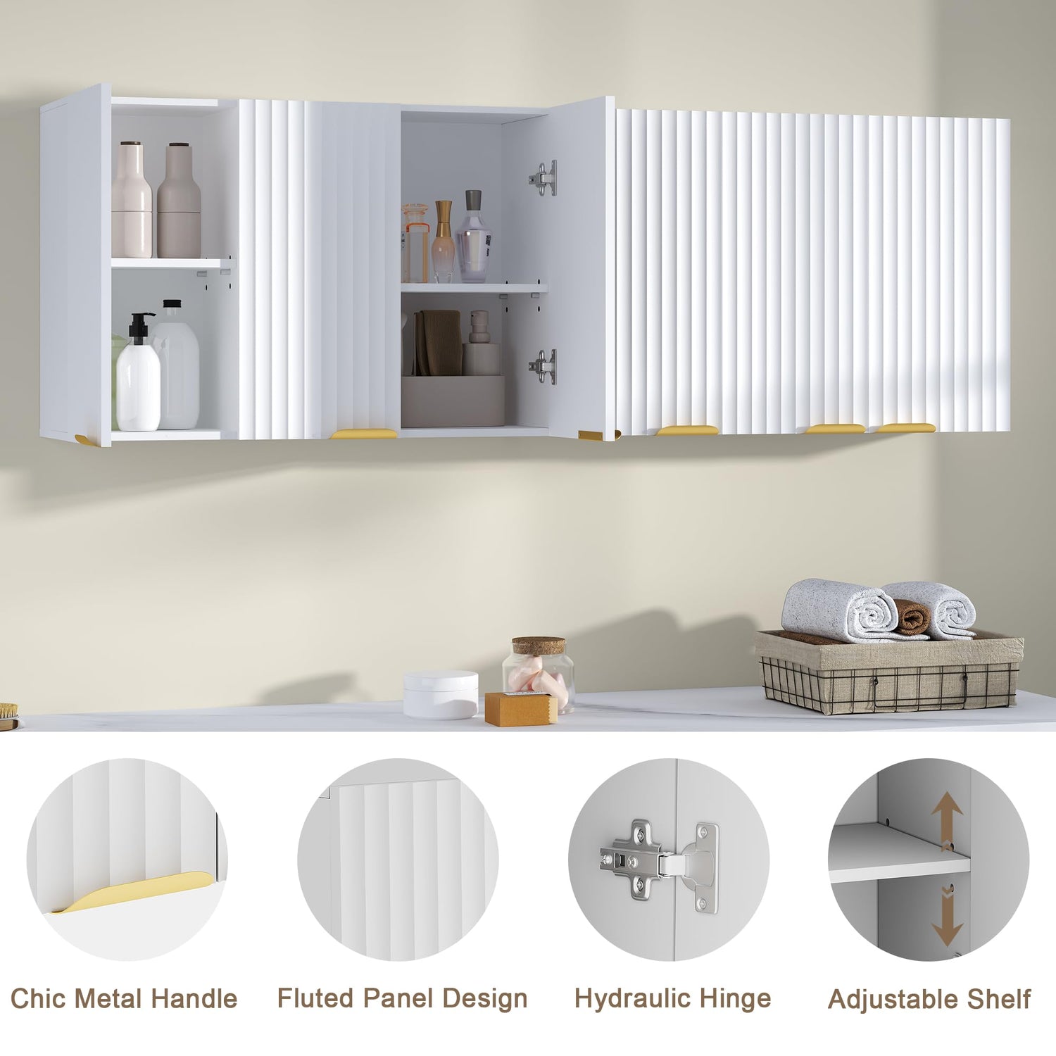 ChooChoo 3-Door Bathroom Wall Cabinet, Fluted Kitchen Wall Cabinet with Adjustable Shelf, Wall Mounted Storage Cupboard for Bathroom, Laundry Room, Entryway, Garage, White