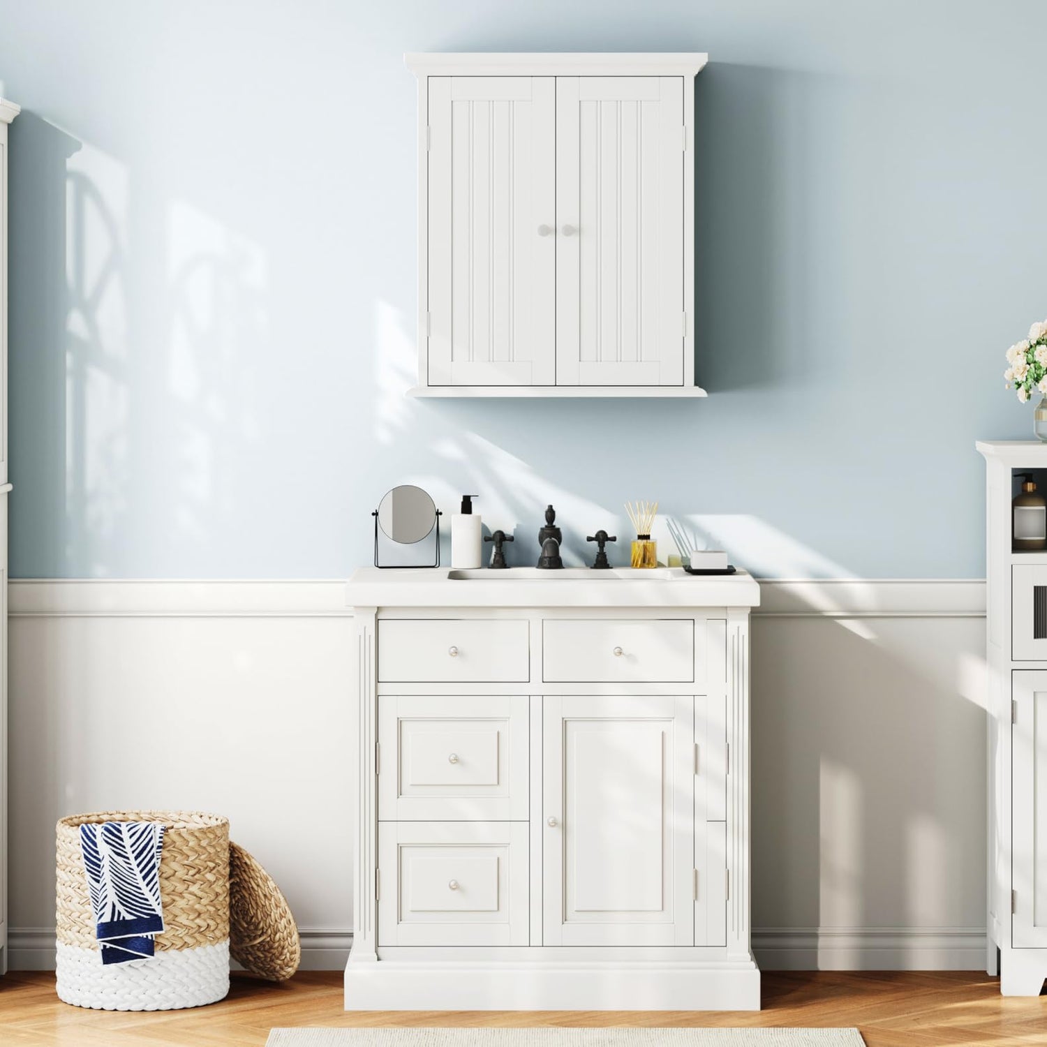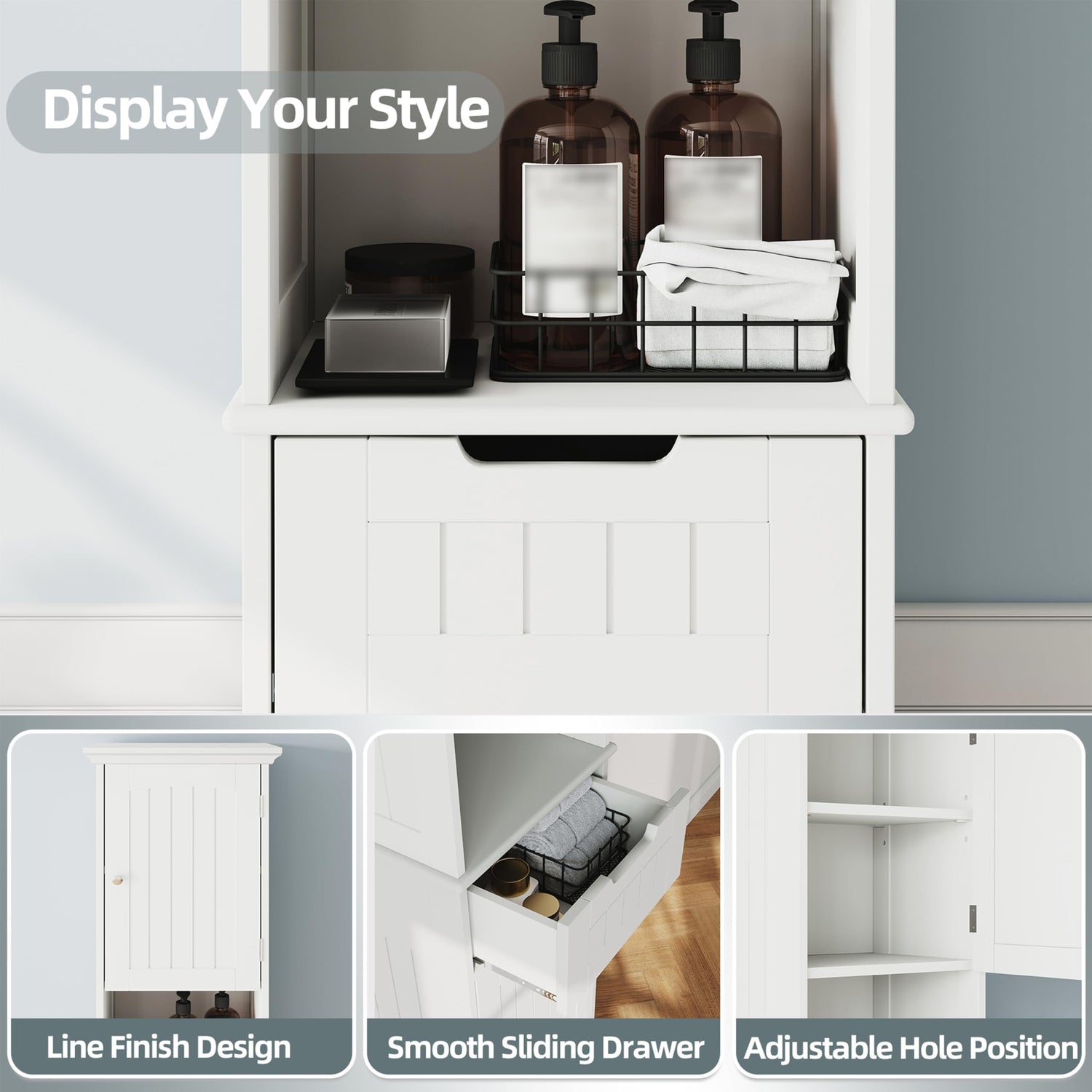 - 【Use Every Inch For Storage】:Tall bathroom cabinets freestanding design 2 doors with adjustable shelves, which simultaneously meet the storage needs and sizes of items in the high and low areas. The slim bathroom storage cabinet has an accessible open storage space and small drawers with grooves can help store miscellaneous items, without the need to bend down, allowing the countertop to bid farewell to dirt and clutter. A reasonable and orderly storage design will maximize your vertical storage area