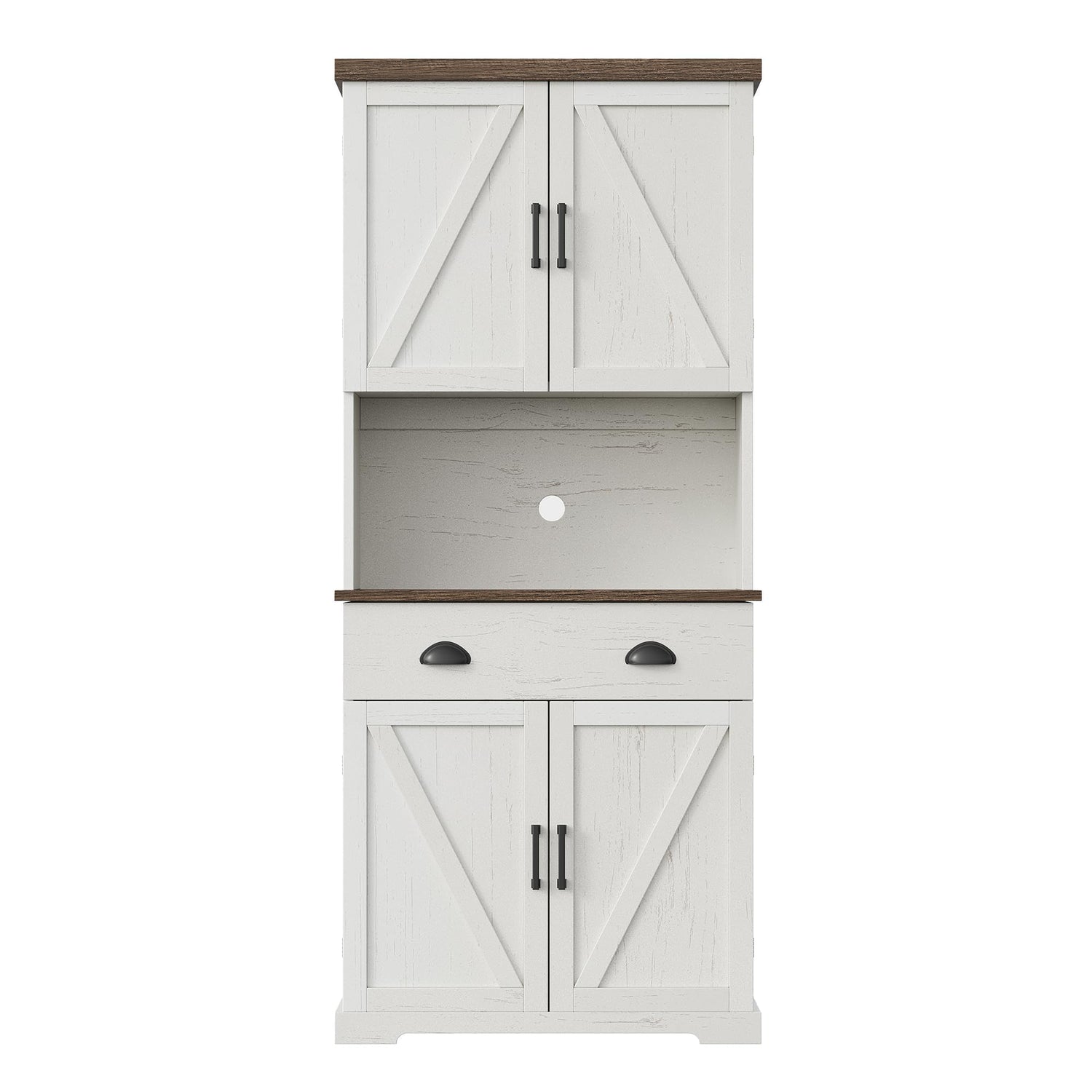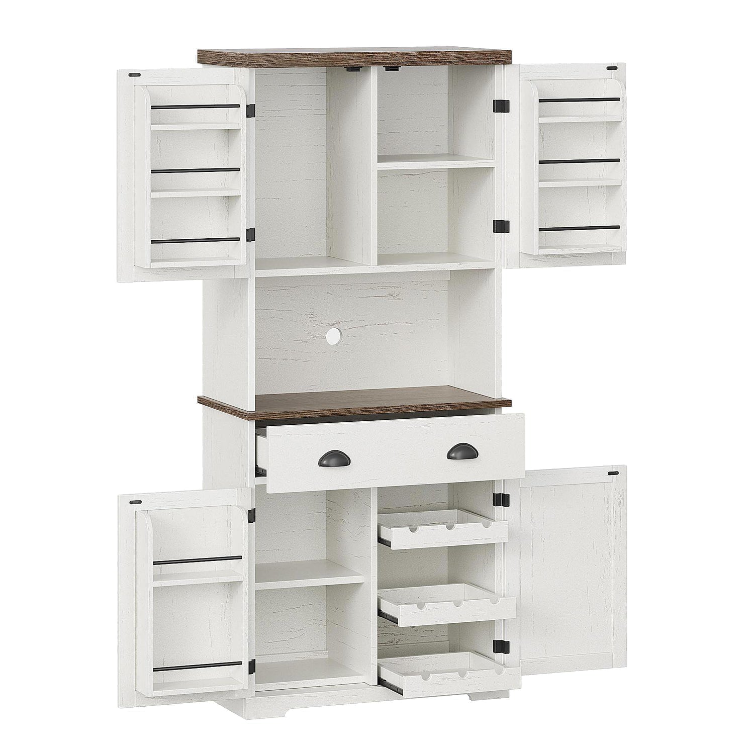 ChooChoo 72" Pantry Cabinet with Storage Drawers, Farmhouse Kitchen Hutch Bar Cabinet with Microwave Stand, Kitchen Cupboard with Door Shelves for Dining Room, Living Room, Antique White & Brown