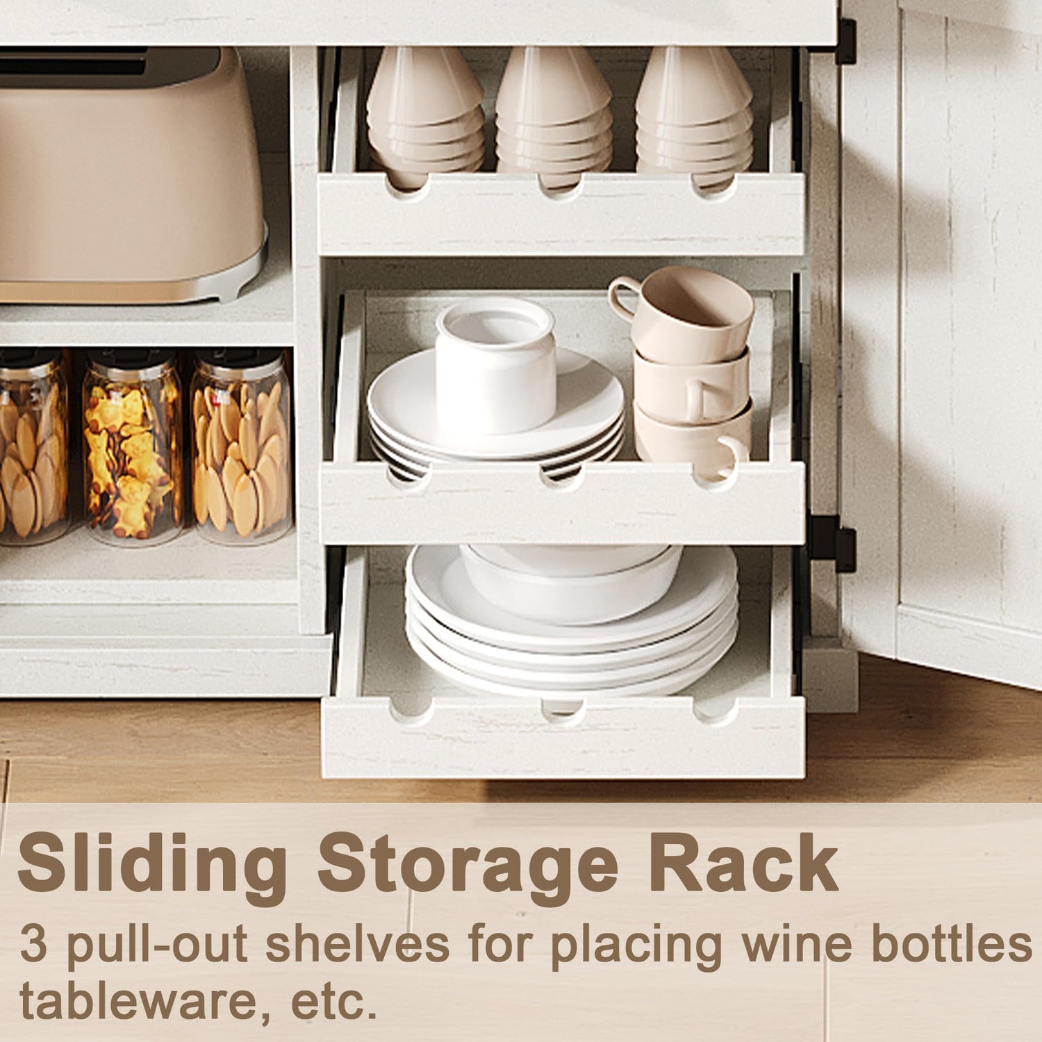 - 【Sliding Storage Racks】The bottom shelf of this wine cabinet features 3 sliding racks, perfect for storing wine bottles, bowls, and plates, etc. adding more flexible storage methods