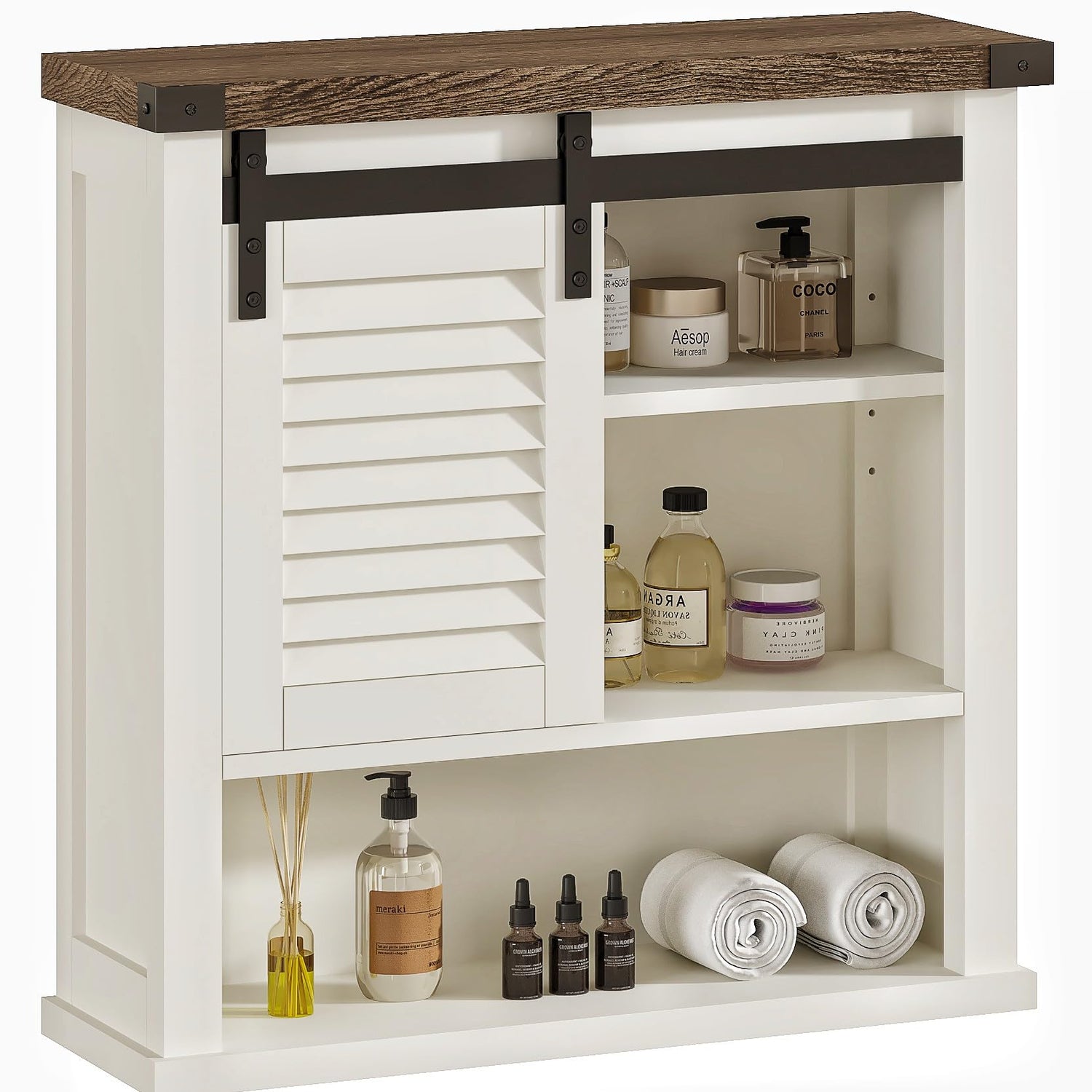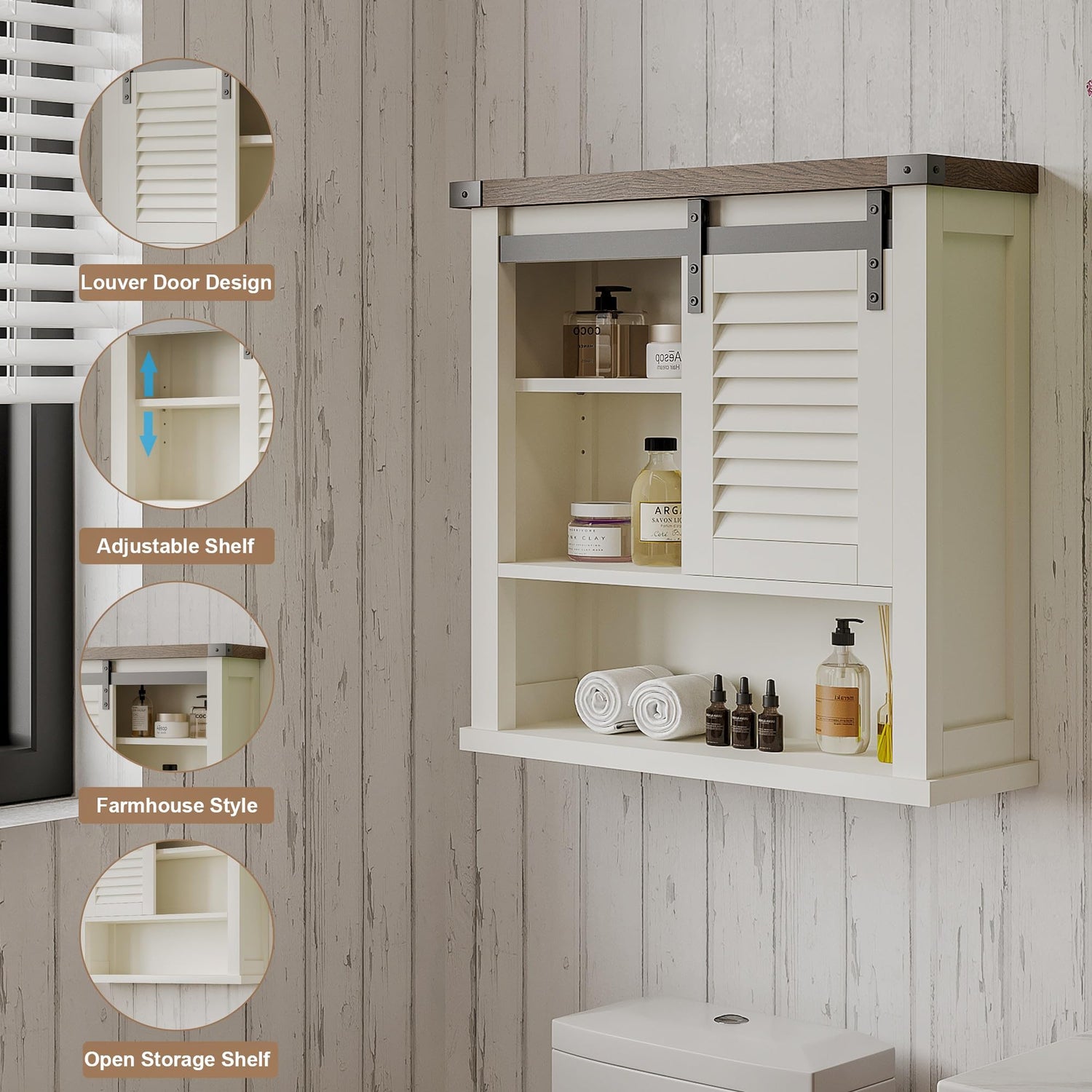ChooChoo Bathroom Wall Cabinet, Medicine Cabinets for Bathroom with Sliding Barn Door, Decorative Farmhouse Wall Cabinet with Adjustable Shelves Space Saver, Farmhouse White