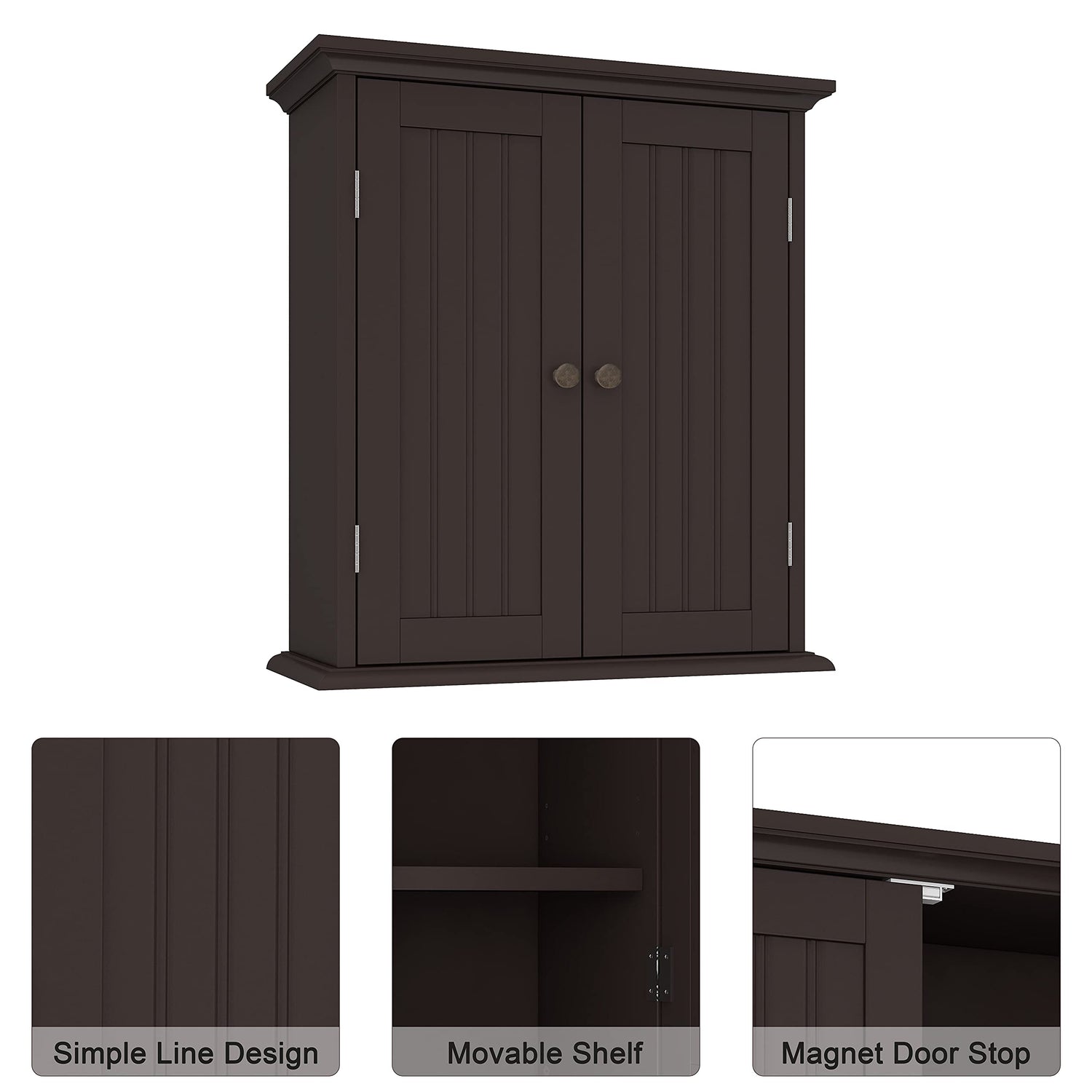 - 【MODERN AND ELEGANT DESIGN】Classic espresso finish adds elegance to your decor, complemented by sleek lines for a clean, decent appearance. This espresso wall cabinet will make updating your bathroom a breeze