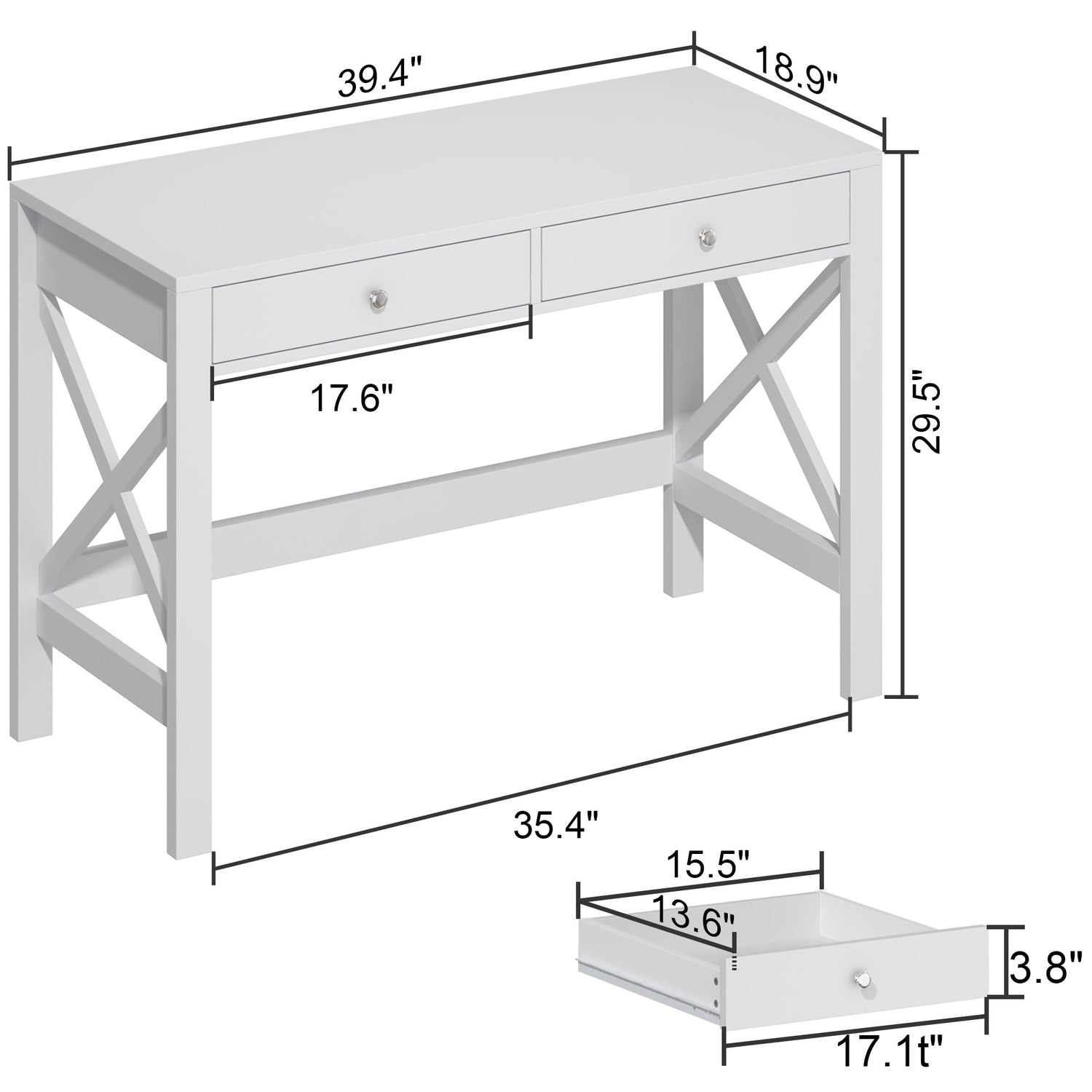 ChooChoo Computer Desk Study for Home Office, Modern Simple 40 Inches White Desk with Drawers, Makeup Vanity Console Table