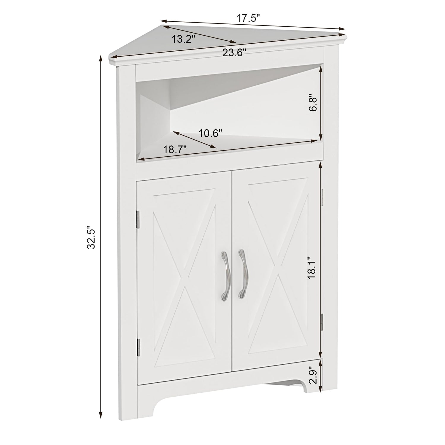 - 【Large Capacity Corner Cabinet】With total dimensions of 23.6"(W) x 13.2"(D) x 32.5"(H), our corner cabinet makes the most of your corner space. It has 2 levels of open space and 1 internal adjustable shelf to hold any clutter you want to store. Great for kitchens and bedrooms.