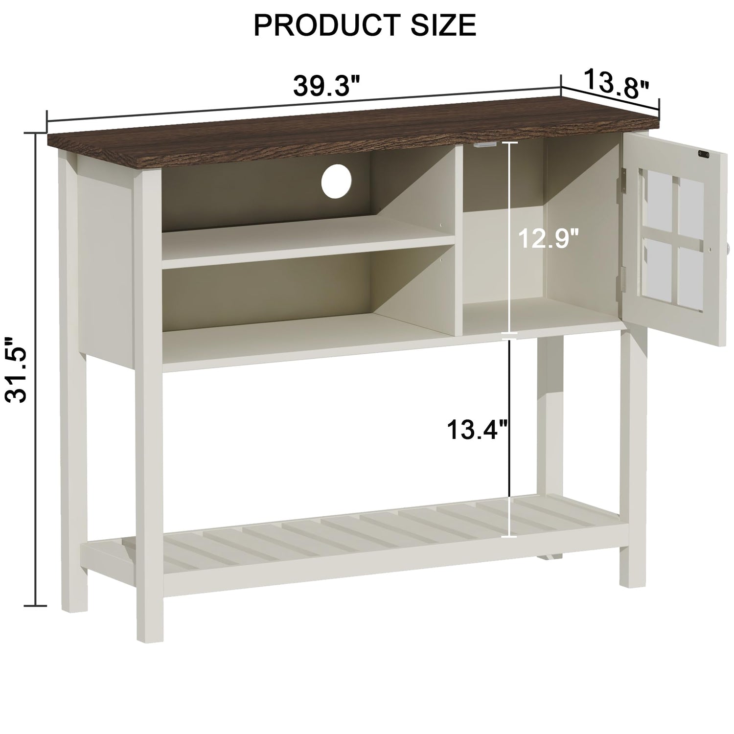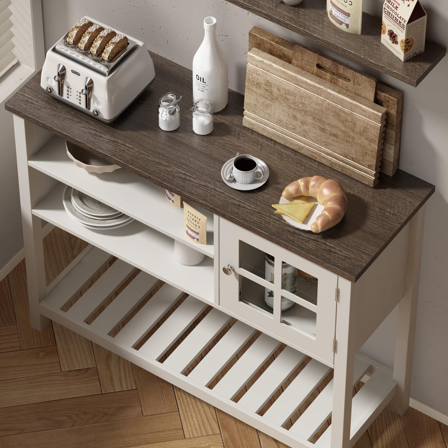 ChooChoo Farmhouse Coffee Bar Cabinet, Buffet Cabinet with Storage, Sideboard Buffet Cabinet with Glass Door, Console Table for Kitchen, Hallway, Entrance, White