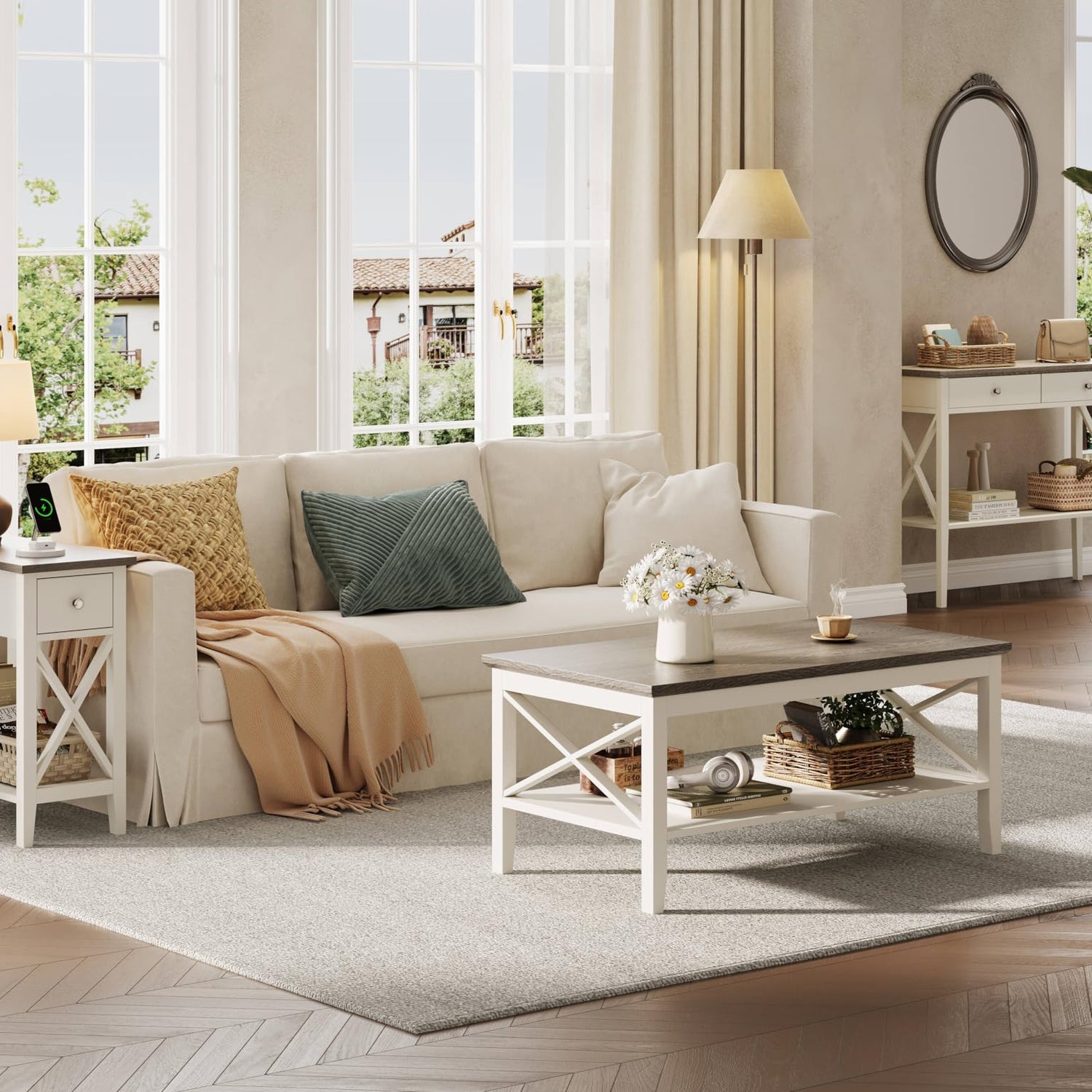 - 【Farmhouse Feel】Featuring a two-tone mix of soft brown and soft white, ChooChoo side table takes a cue from farmhouse style to create a cozy, swoon-worthy feel in your living space.