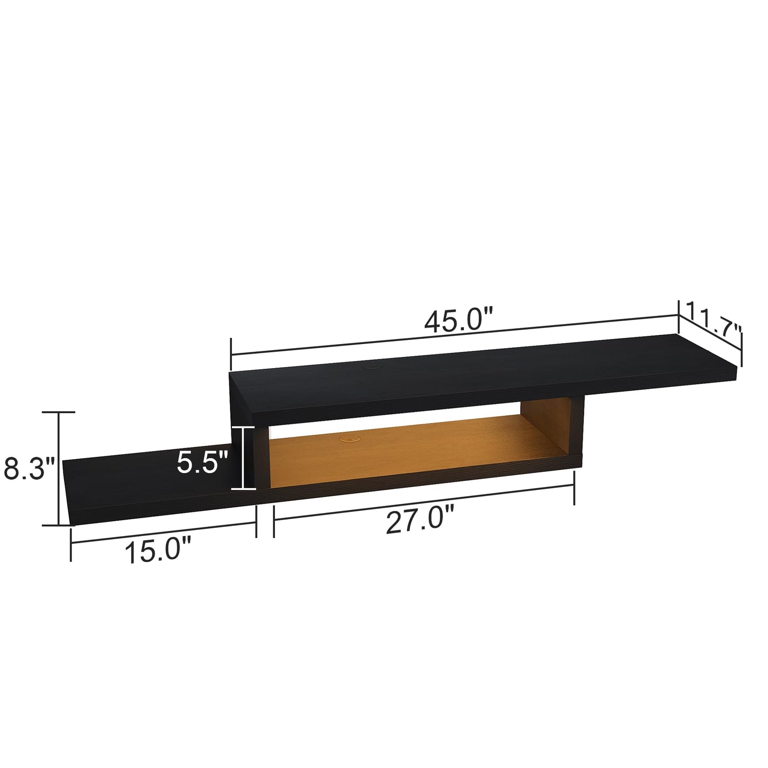 - 【Unique Asymmetrical Design】This wall TV stand with an attractive unique asymmetrical design, wall-mounted use can save room space. The wire holes are designed to keep your standtop neatly organized