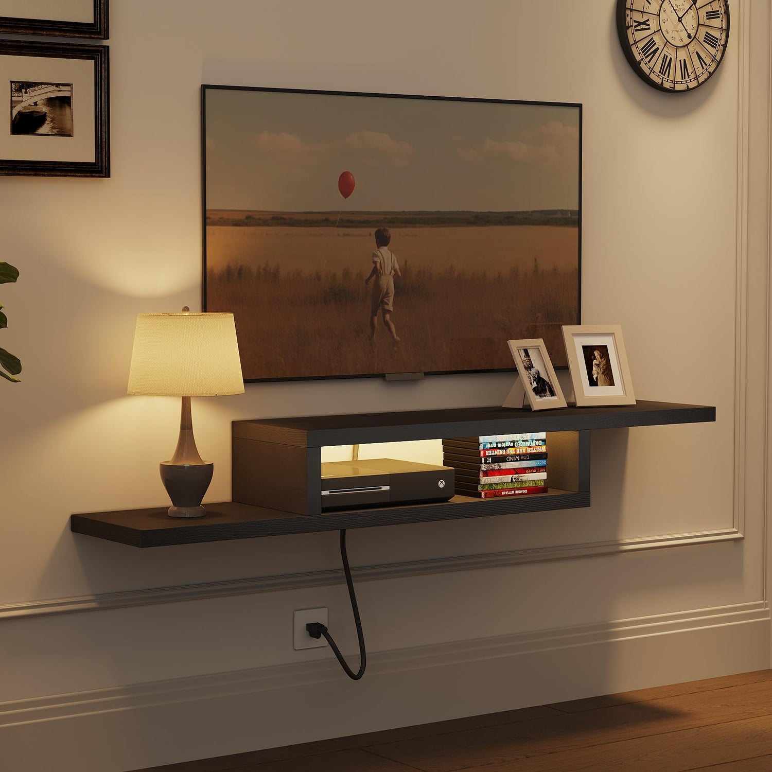 ChooChoo Floating TV Stand Shelf with LED, Wall Mount Entertainment Center, 60'' Media Console Stand for Living Room, Bedroom, Black