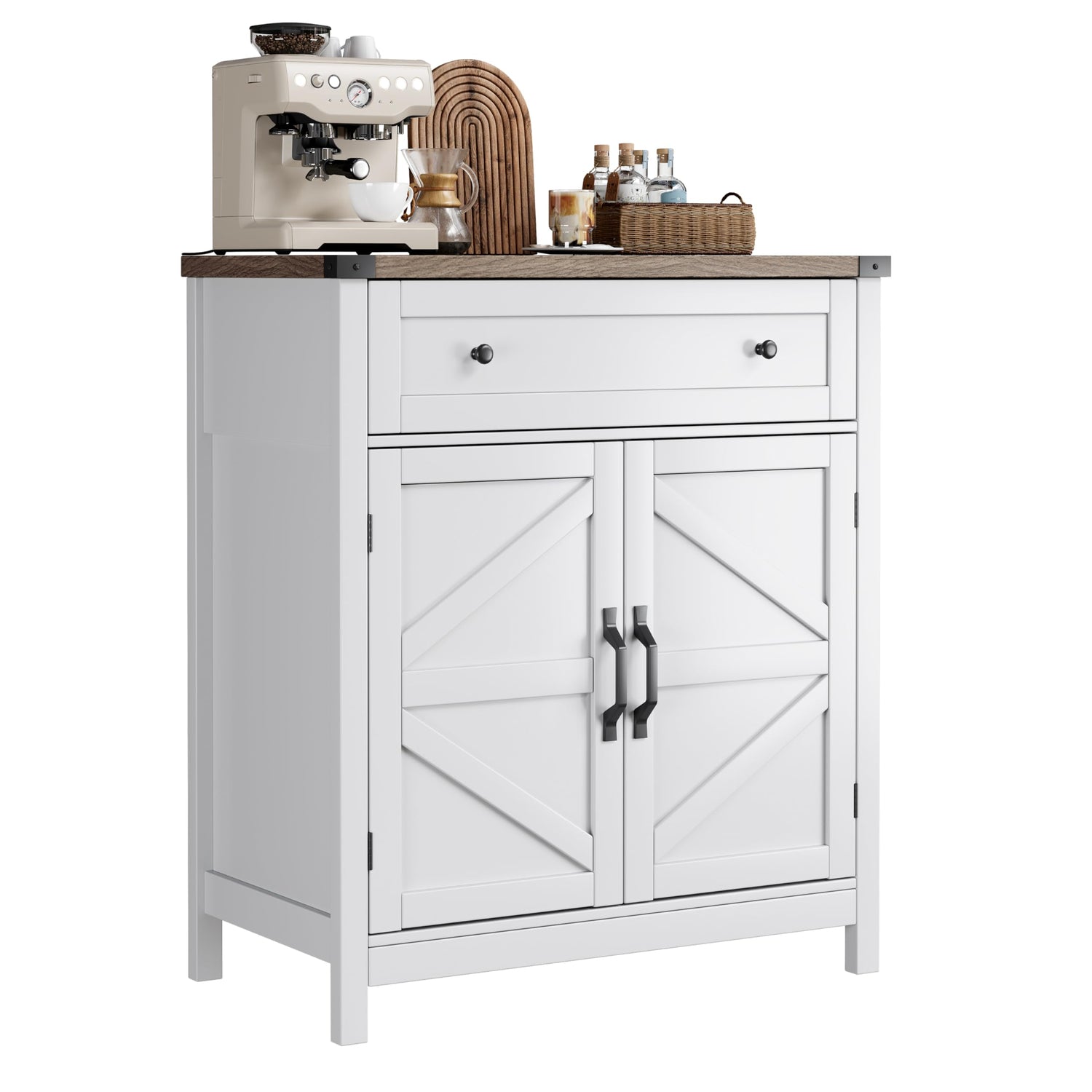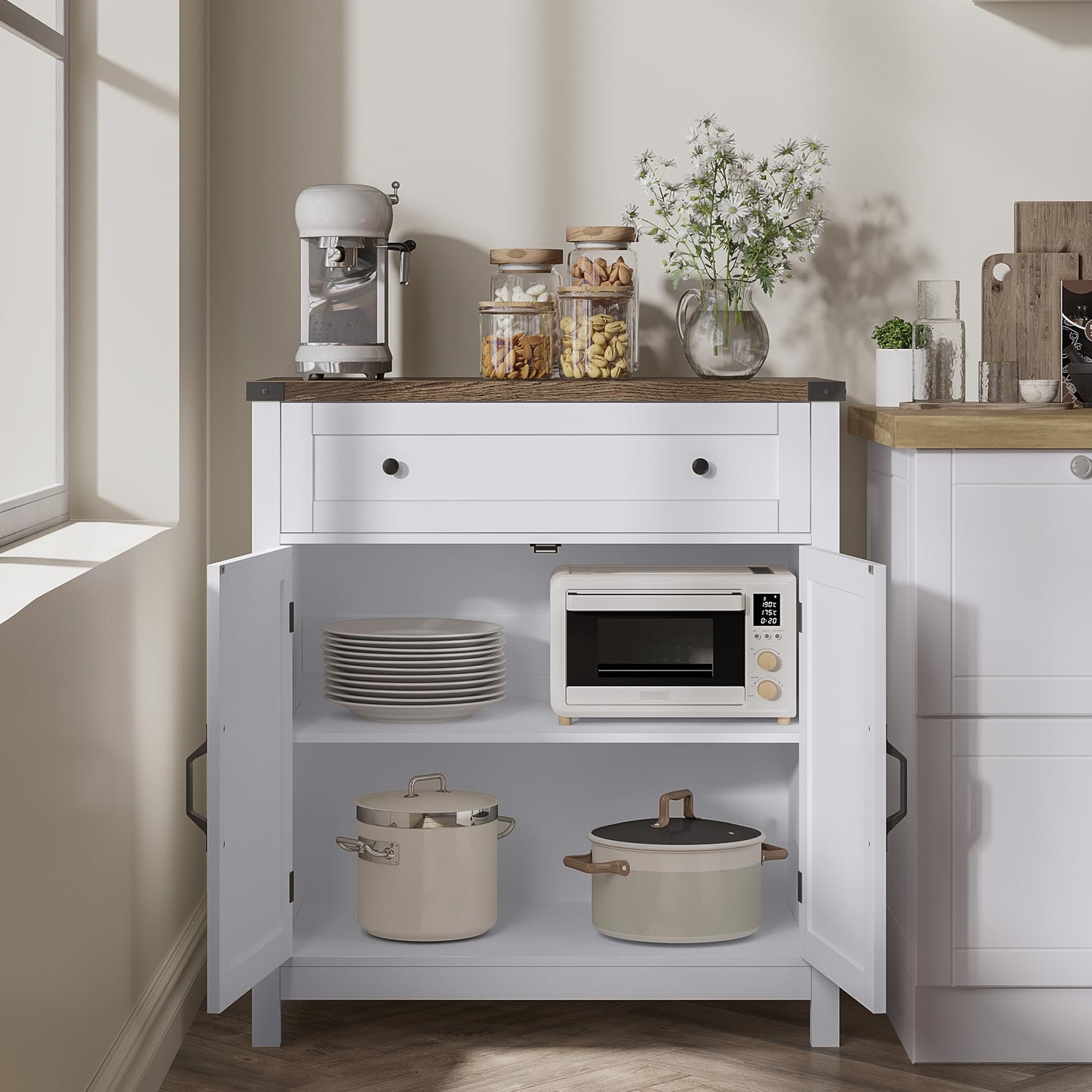 ChooChoo Kitchen Storage Cabinet, Coffee Bar Cabinet, Buffet Sideboard Cabinet with Drawer, Entryway Cabinet for Kitchen, Living Room, White