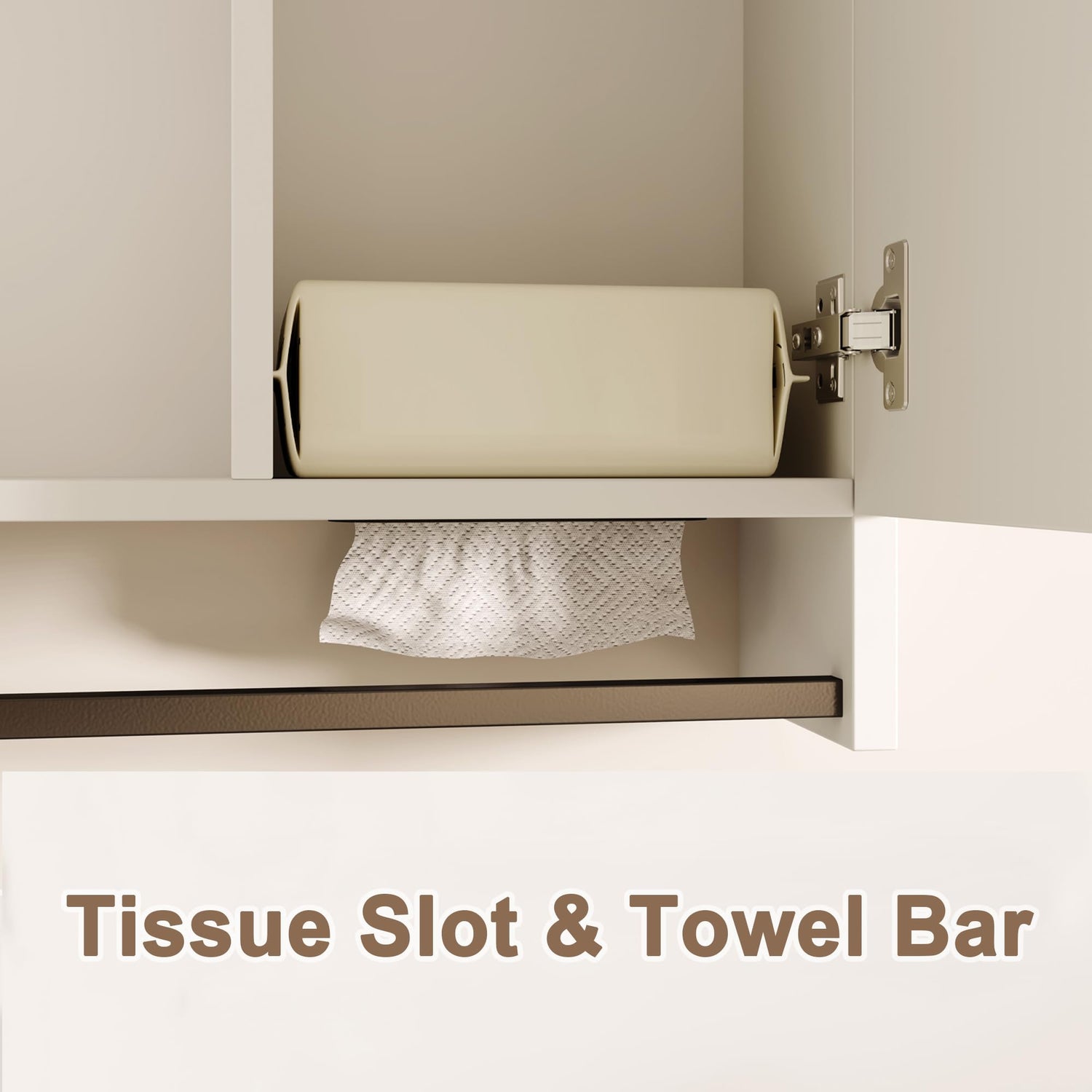 - 【Durable & Functional】The medicine cabinet organizer features a tissue slot, towel bar, and adjustable hinges for added convenience. Made from water-resistant MDF with premium paint, it’s designed for long-lasting use in humid spaces