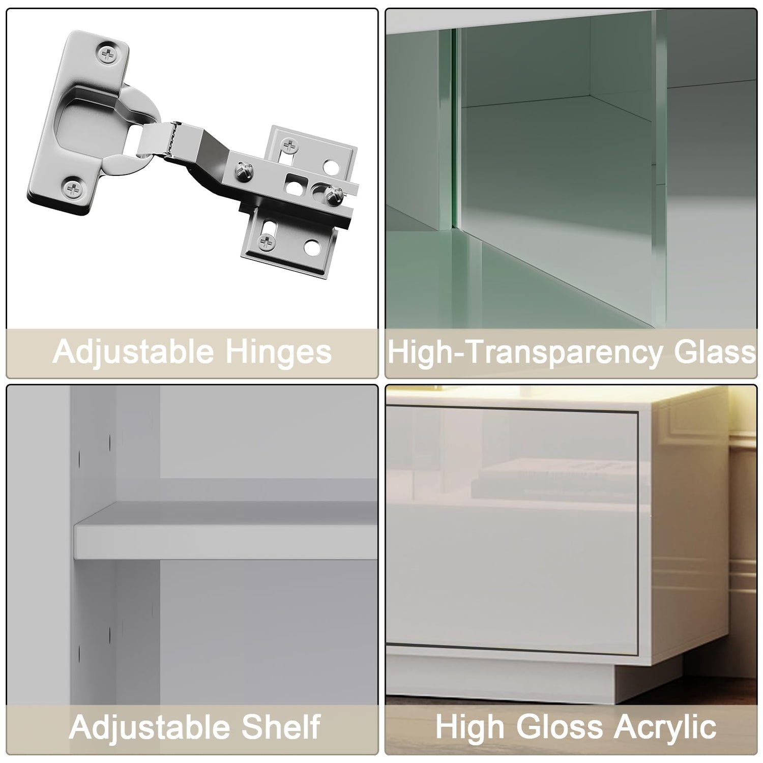 - 【High-gloss Entertainment Center】Our entertainment center is a high gloss design with a high gloss paint surface that is scratch-resistant and easy to clean. The production material is made of high-quality MDF, and the thick structure has a strong load-bearing capacity, sturdy, stable, and durable.