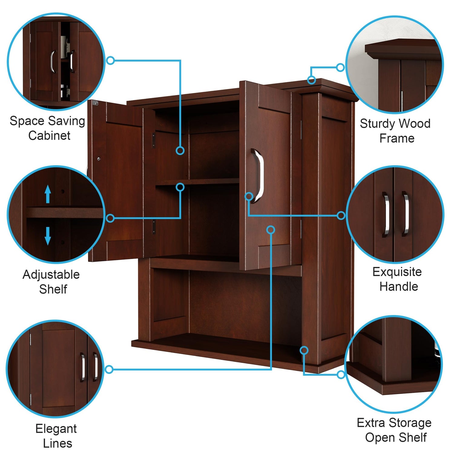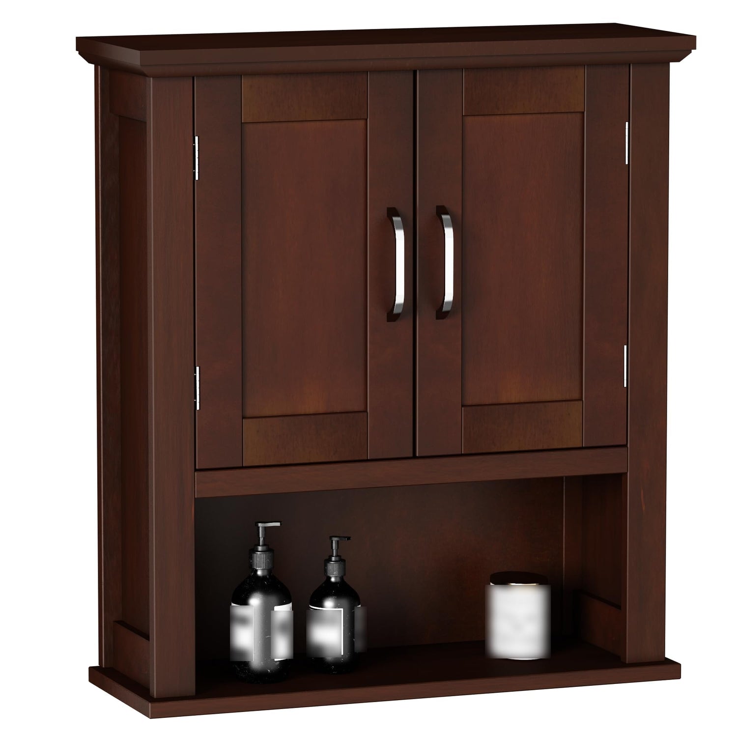ChooChoo Wood Wall Cabinet with Doors, Medicine Cabinet with Adjustable Shelves Over The Toilet, Rustic Cabinet Wall Mounted for Bathroom, Kitchen, Living Room, Dark Cherry