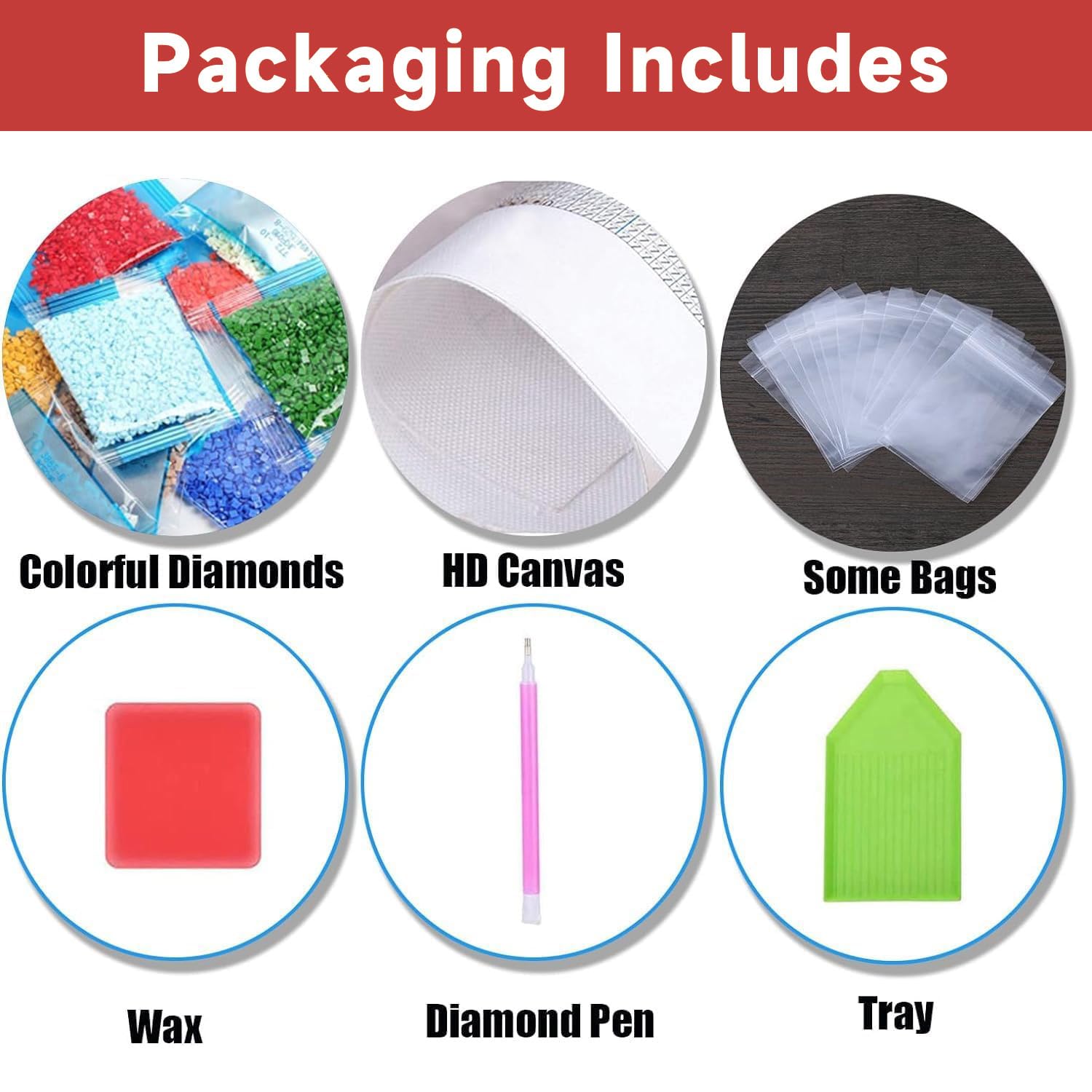 - Package Included: Diamond painting tool kit includes 1 canvas without frame, 1 diamond sticky pens, 1 clay, 1 craft tray and some resealable bags (we added an additional 30% of diamonds to prevent the occurrence of insufficient diamonds)