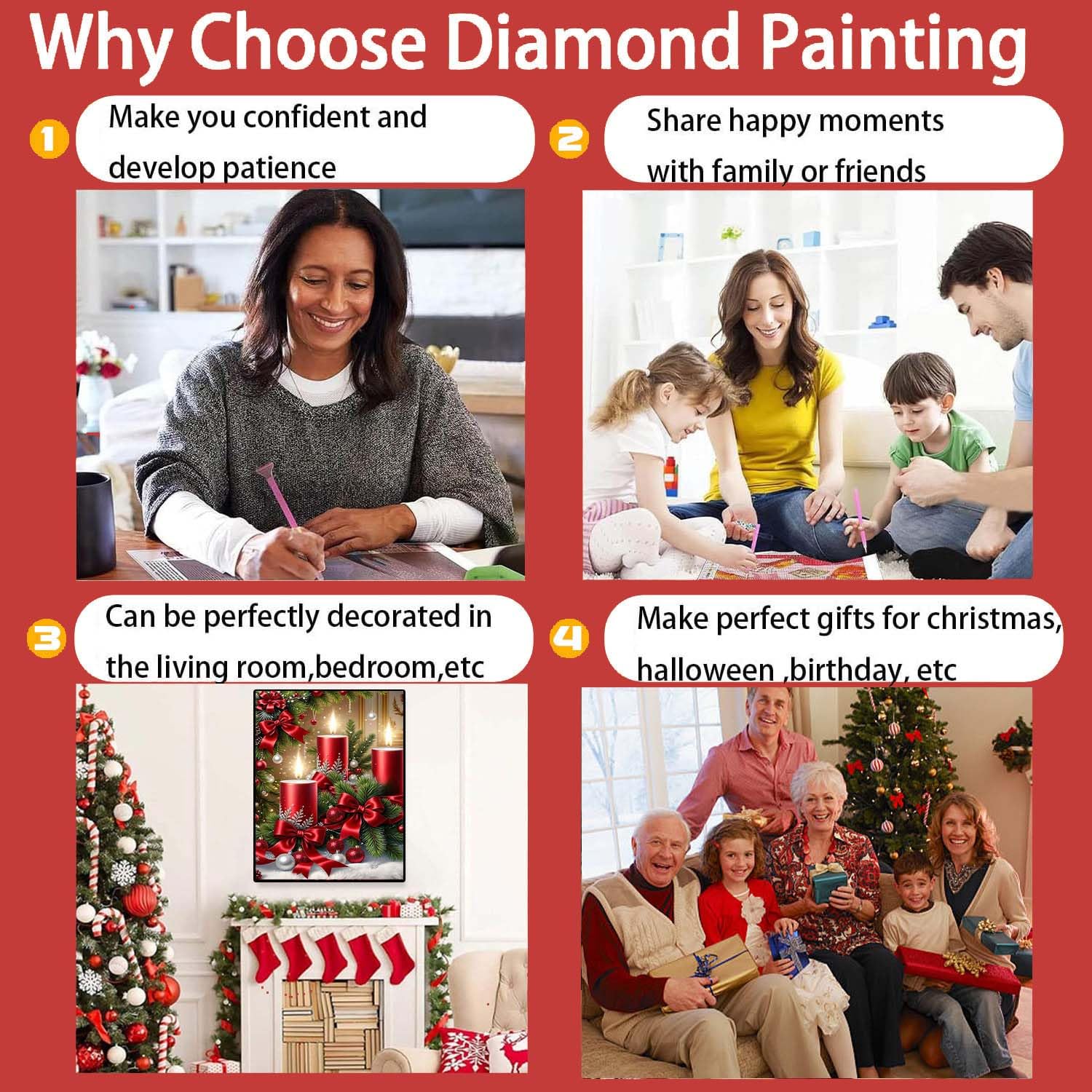 - Versatile Home Decor: Diamond painting kits once completed, it can be framed and hung on living room walls, placed on entryway tables, or used to dress up fireplace mantels—effortlessly elevating your home’s Christmas ambiance