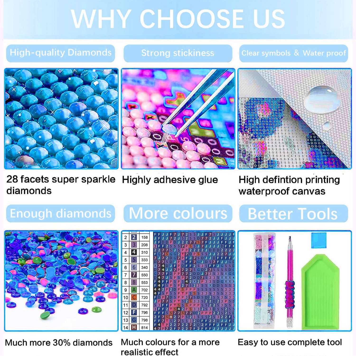 - High Quality Christmas Diamond Painting Kits:Our gem art kit has high clear printing canvas and bright colors,the pattern is covered with strong glue as a whole to make the diamond less likely to fall off.In addition,we added an additional 30% of diamonds