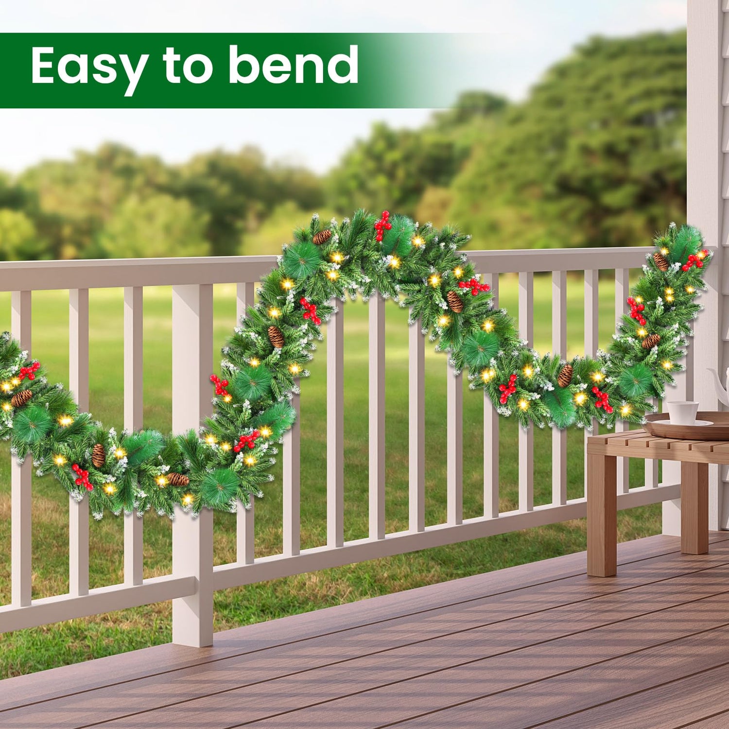 - 🎄Instant Holiday Charm: The christmas garland pre-decorated with vibrant red holly berries and realistic pinecones, along with a mix of PVC and PET pine needles, it's ready to decorate your stairs, windows, doors, fireplaces, arches, or railings. Simply shape it to your liking and hang it up!