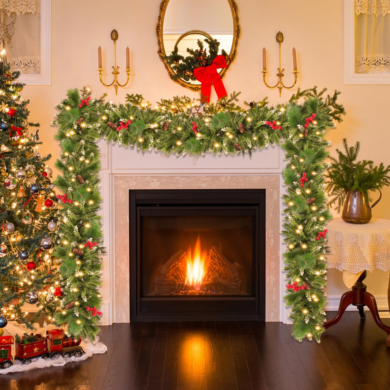 - 🎄Smart and Stylish: The christmas garland with lights features a timer function, allowing the lights to turn on automatically for 6 hours each evening. Set it and forget it—your Christmas garland will light up like clockwork, creating a cozy, welcoming atmosphere.