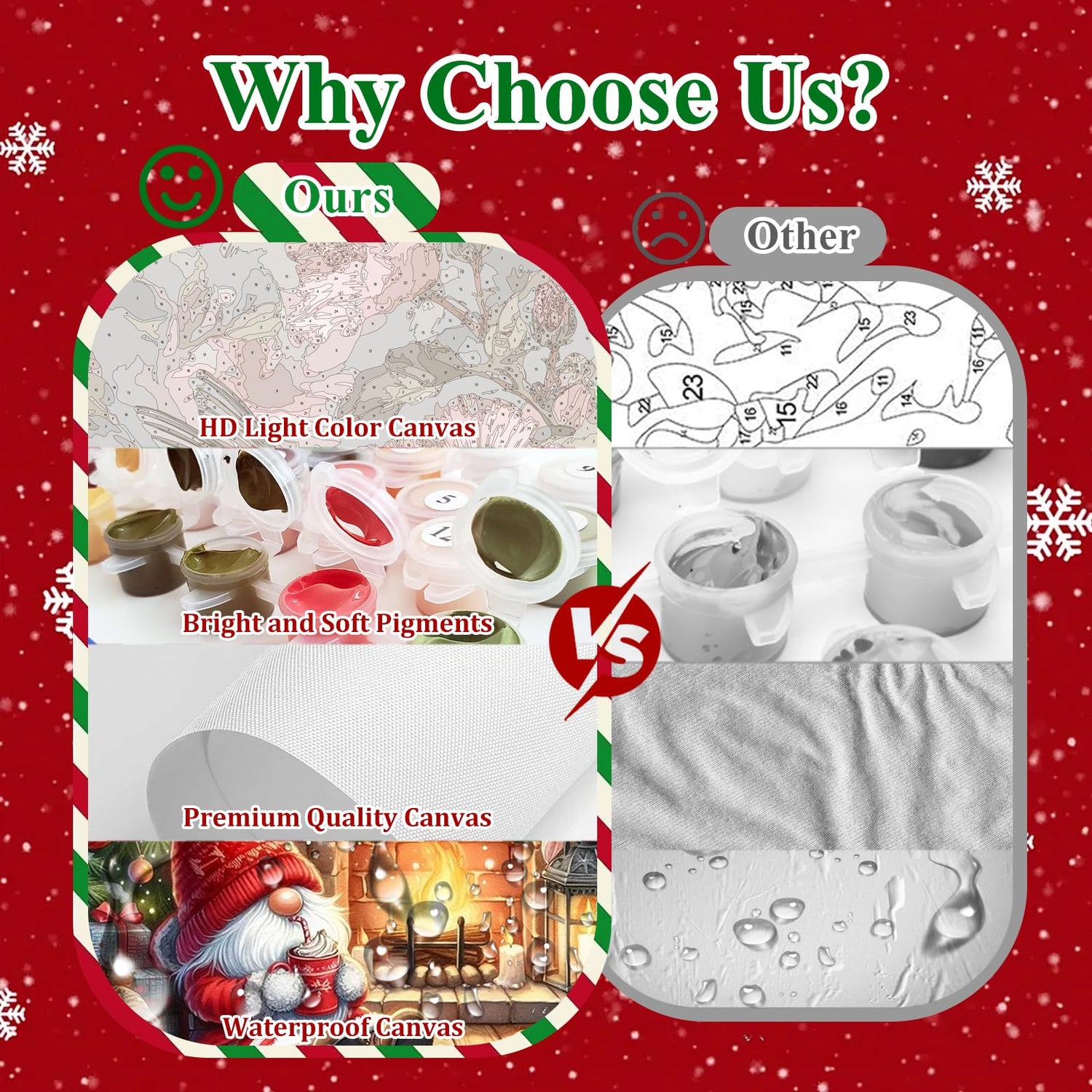 - Christmas Gnome Theme: Cozy up your holidays with our Christmas Gnome Paint by Numbers Kit for Adults! This paint by numbers set features a festive gnome sipping cocoa by a glowing fireplace, surrounded by Xmas trees, gifts, and treats. HD lines make capturing every detail easy. Turn colors into a snug, holiday - inspired escape, bring this whimsical Christmas charm to your home, no skills needed!