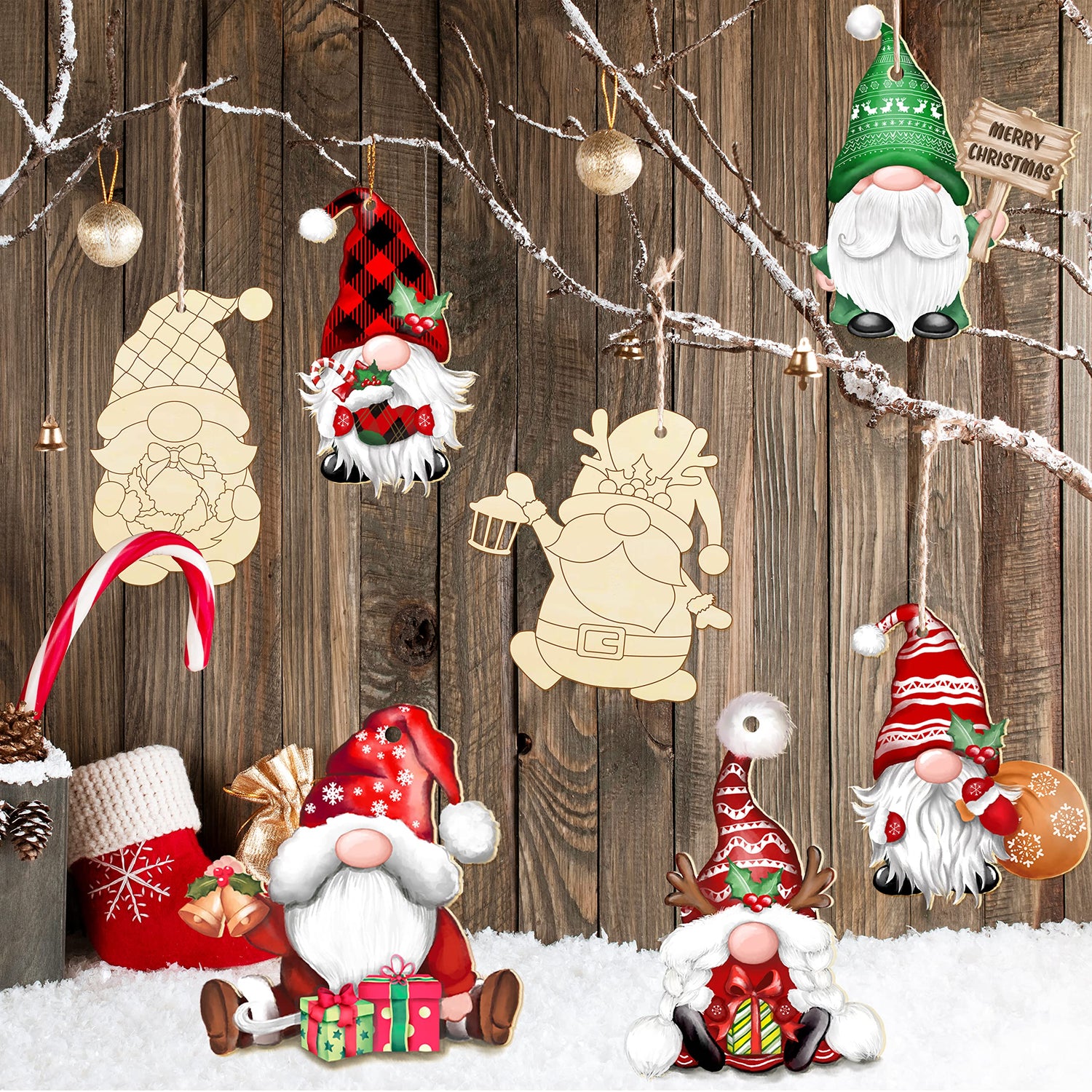 Details: Christmas Gnome Unfinished Wood Crafts Wood Cutout Painting Ornaments Blank Hanging Slices Paintable DIY Crafts for Holiday Party Decoration