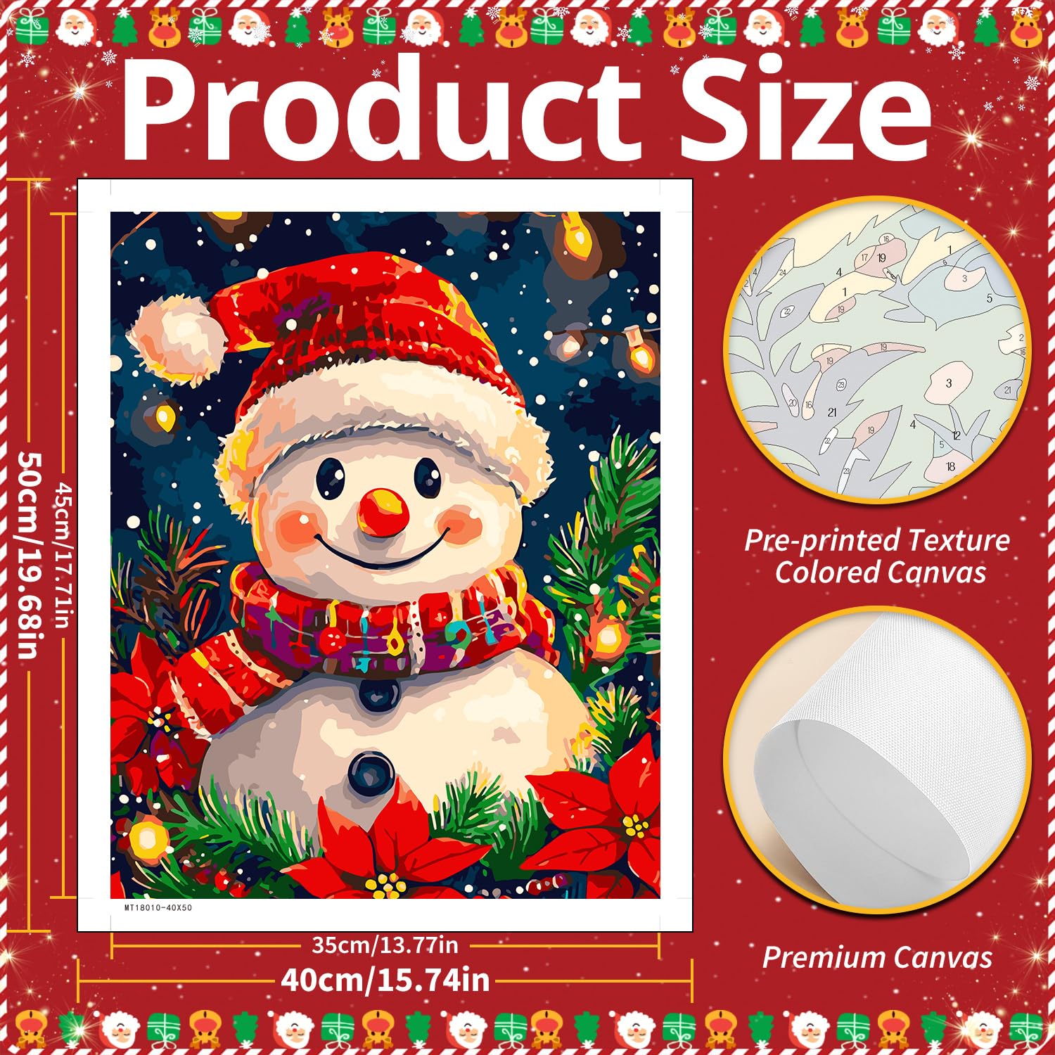- 【HD Color Canvas】 Our snowman painting by number uses HD color canvas, which is different from other monochrome canvases. Our digital areas are easier to distinguish and paint is easier to adhere to them. The color canvas can prevent eye fatigue and make painting easier.