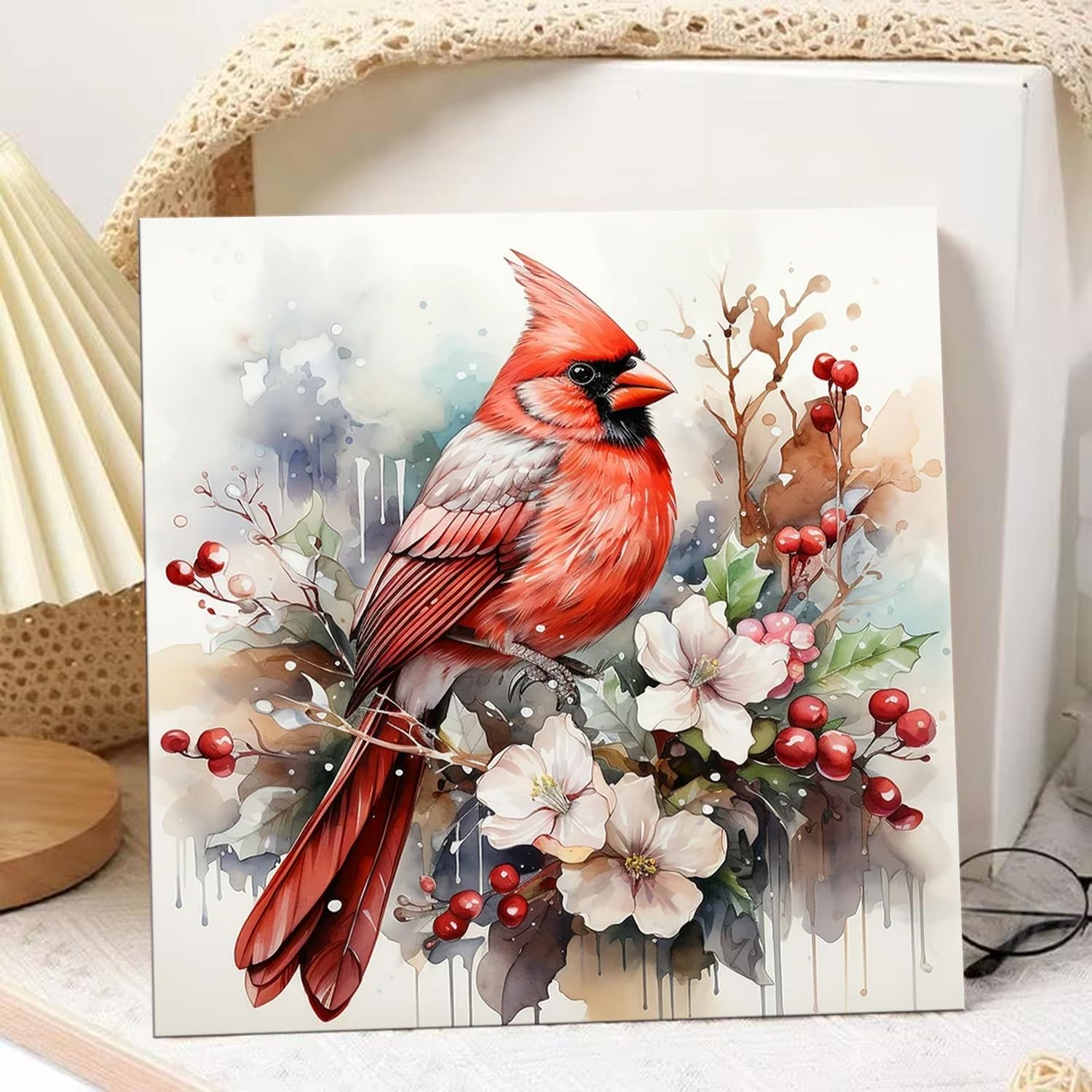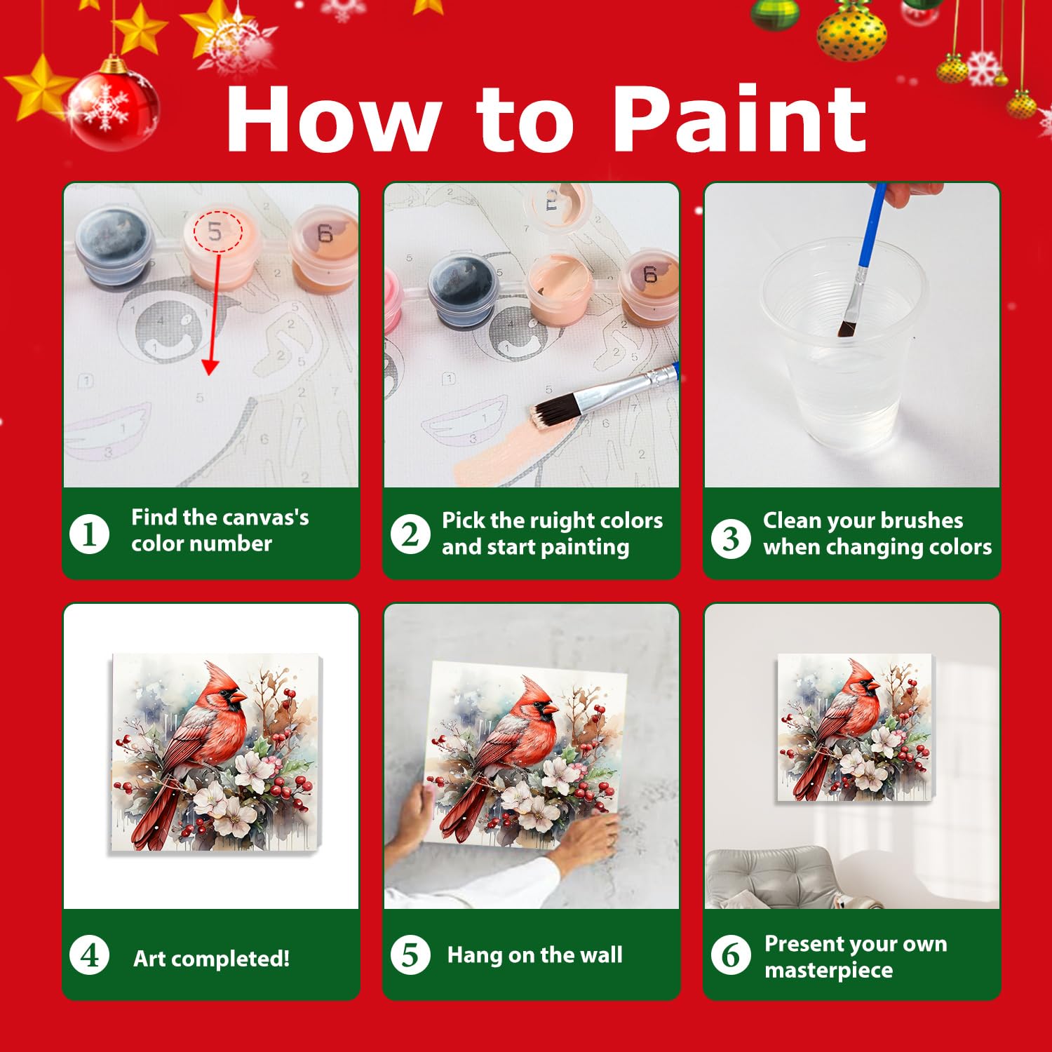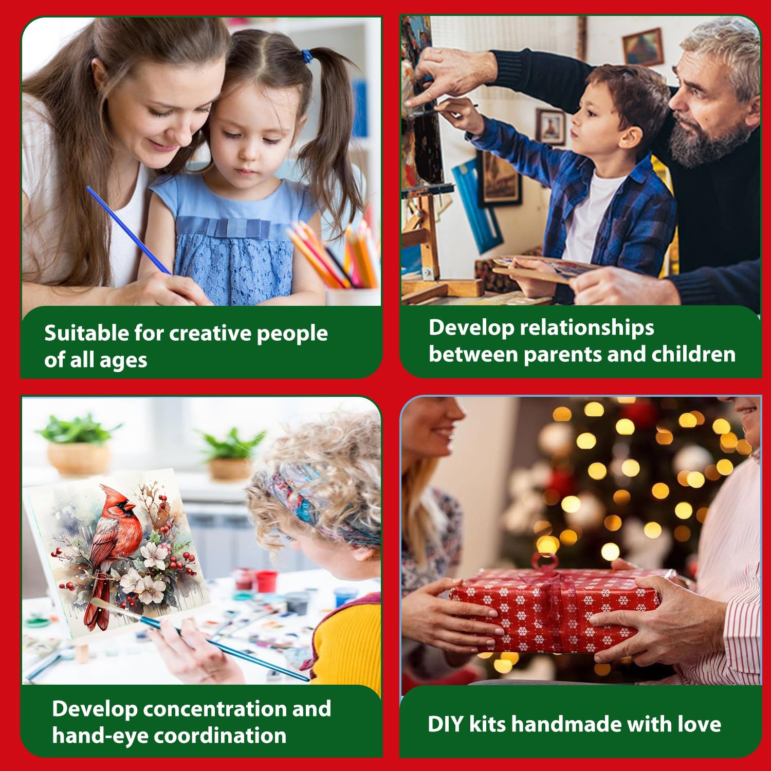 Christmas Paint by Numbers for Adults Framed, Cardinal Paint by Numbers Kit for Adults with Easel, Easy Crafts Painting by Number for Gift Home Decor 9.84x9.84 in