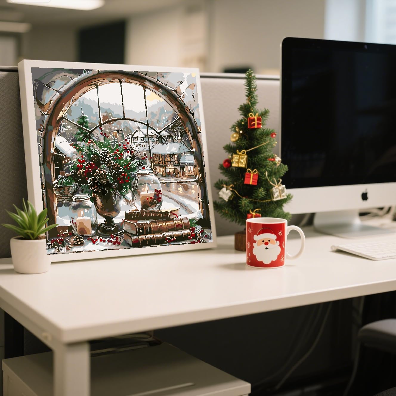 Christmas Paint by Numbers for Adults Xmas DIY Paint by Number Acrylic Canvas Winter Painting Art Kits for Home Decor 16x16 Inch (Without Frame)