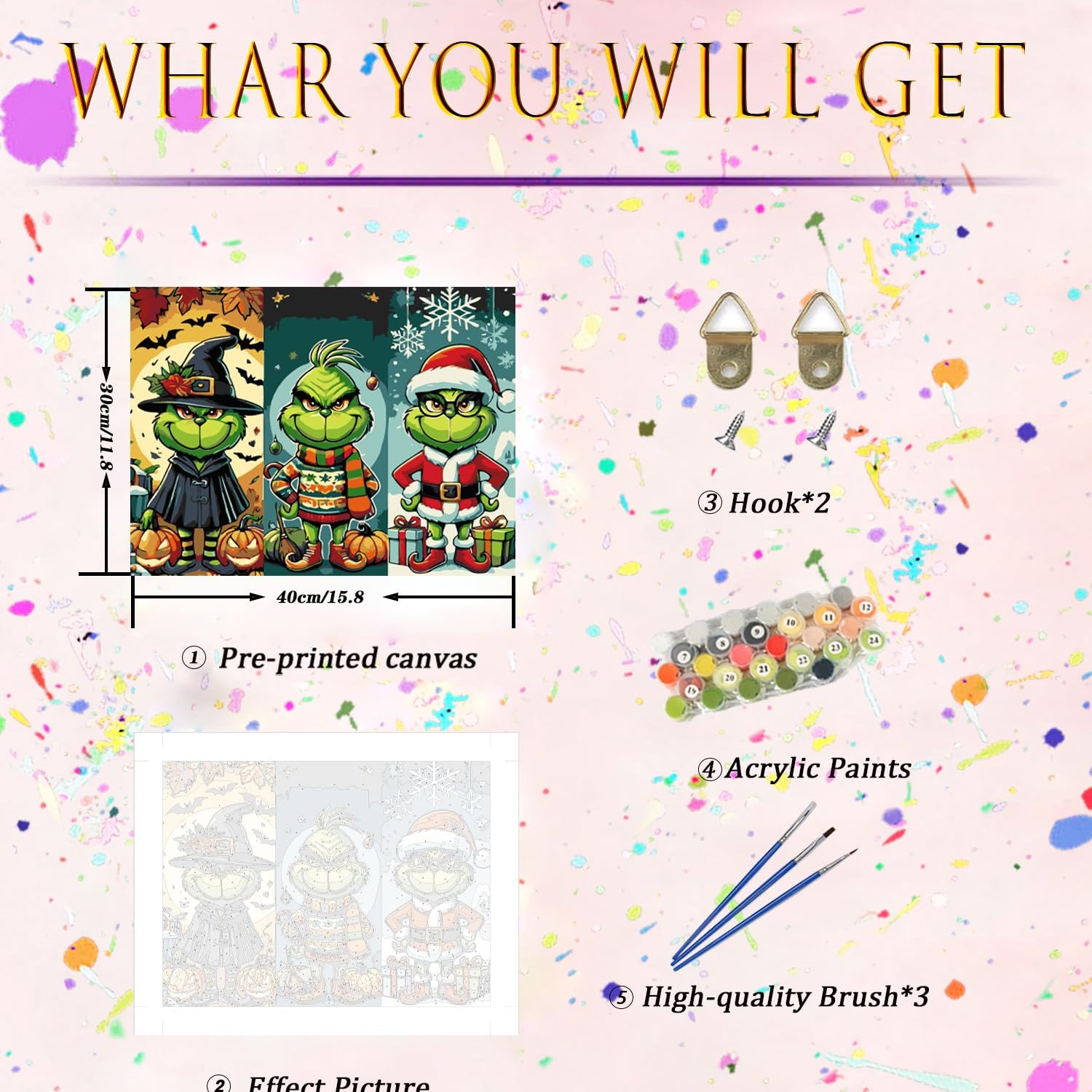 - 【Quality Material】: DIY Christmas winter paint-by-number kits has everything you need,Include 1*canvas (without frame), 1 set of high-quality acrylic paint, 3 pcs brushes, 1 paper copy of numbered canvas for reference, 1 color postcard guide, 2* Wall-Mounted Hooks and Screws. to ensure that the adult paint by numbers kits can be completed smoothly.