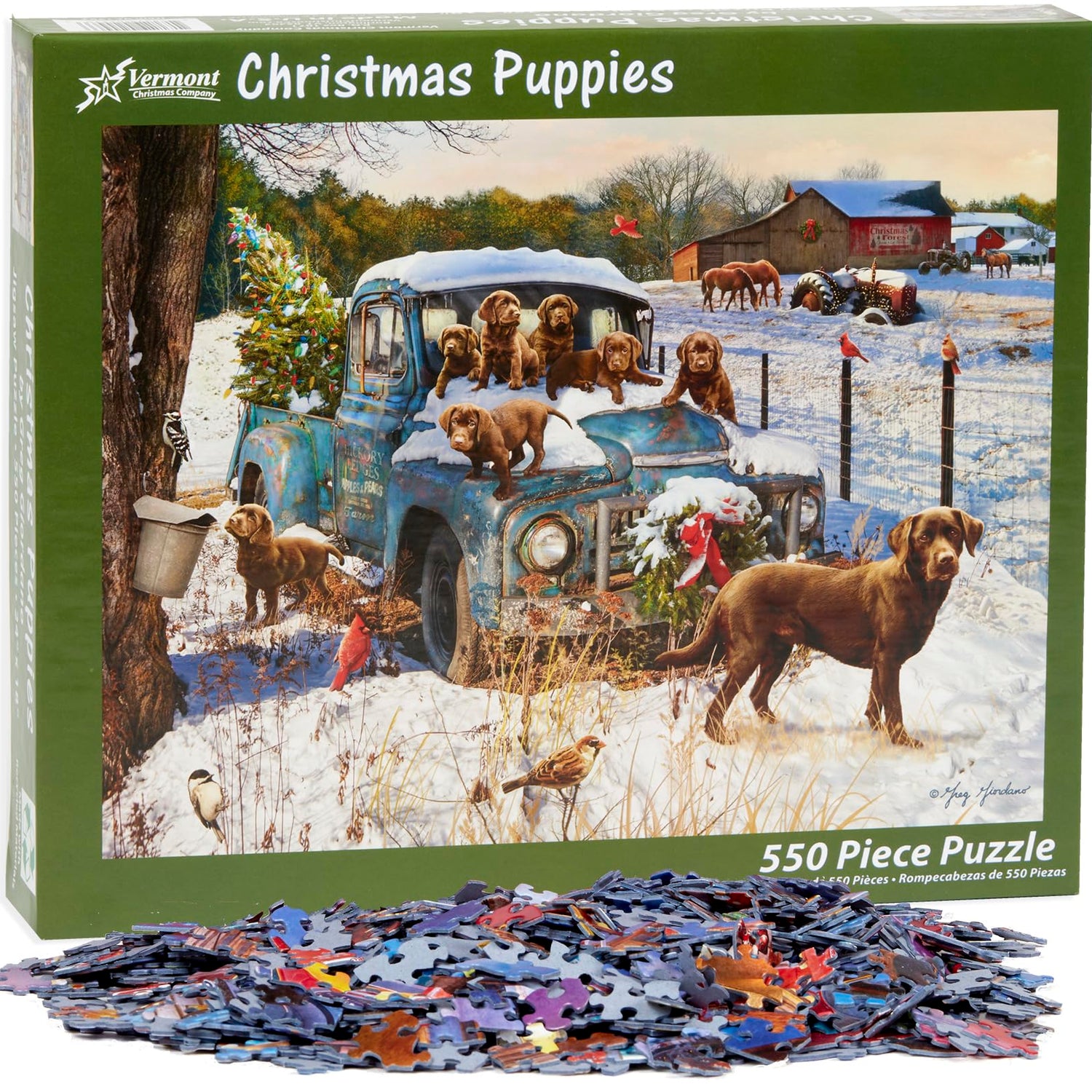 Christmas Puppies Jigsaw Puzzle 550 Piece by Vermont Christmas Company