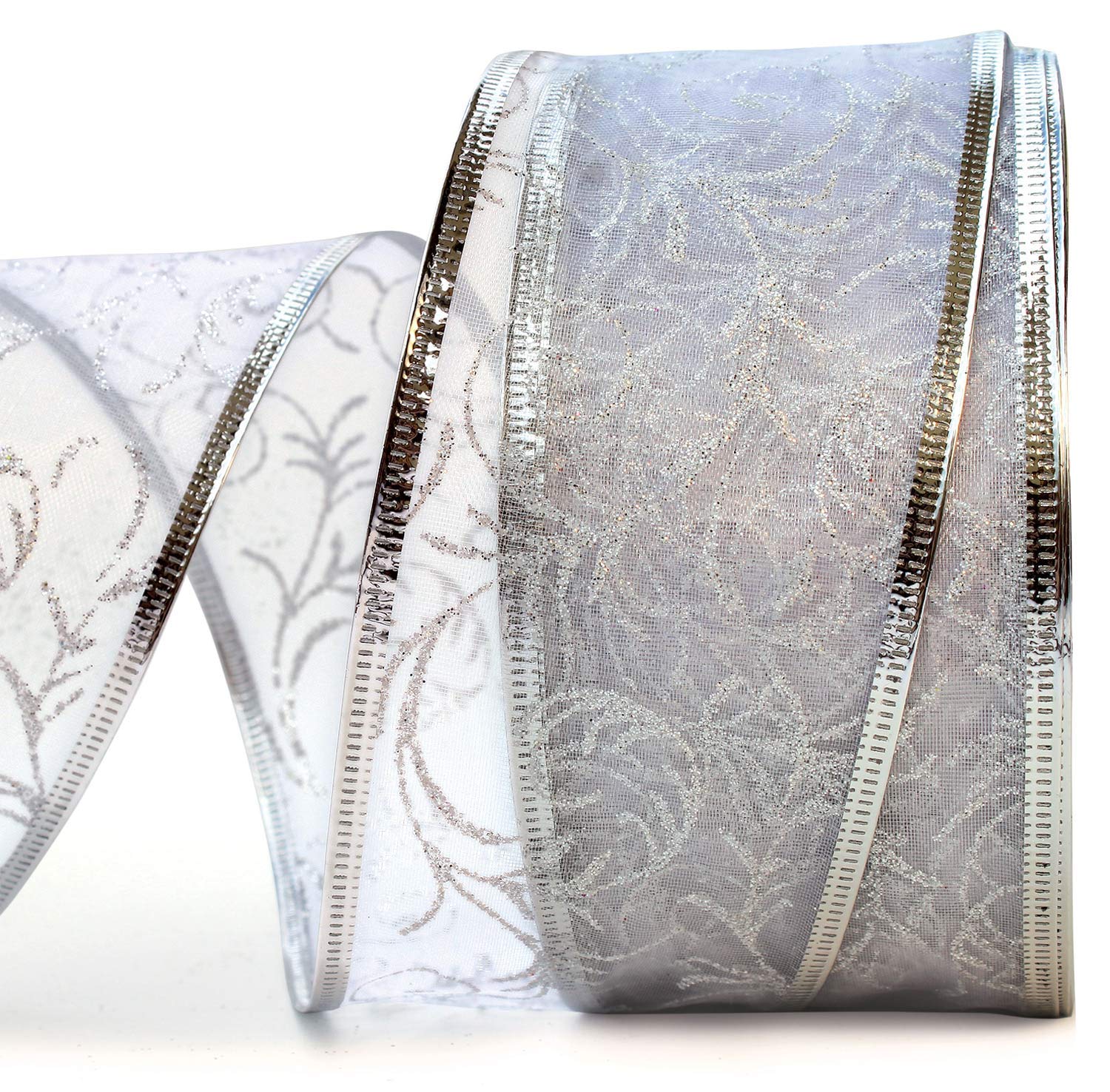- CHRISTMAS RIBBON FOR GIFT WRAPPING / CHRISTMAS TREE /XMAS RIBBON 1.5 WIRED 4 PACK SHEER CHRISTMAS RIBBONS w. GLITTER: Organza Ribbon Set - Gift Wrap Assortment of Color (Red / Silver (White) / Gold) Colored 2.5 Inch Wide: Wire-Edged Metallic Trim: Gift Wrapping Ribbon for Holidays 30 yards / 10 Yd ea. Roll: Wedding for Women & Girls
