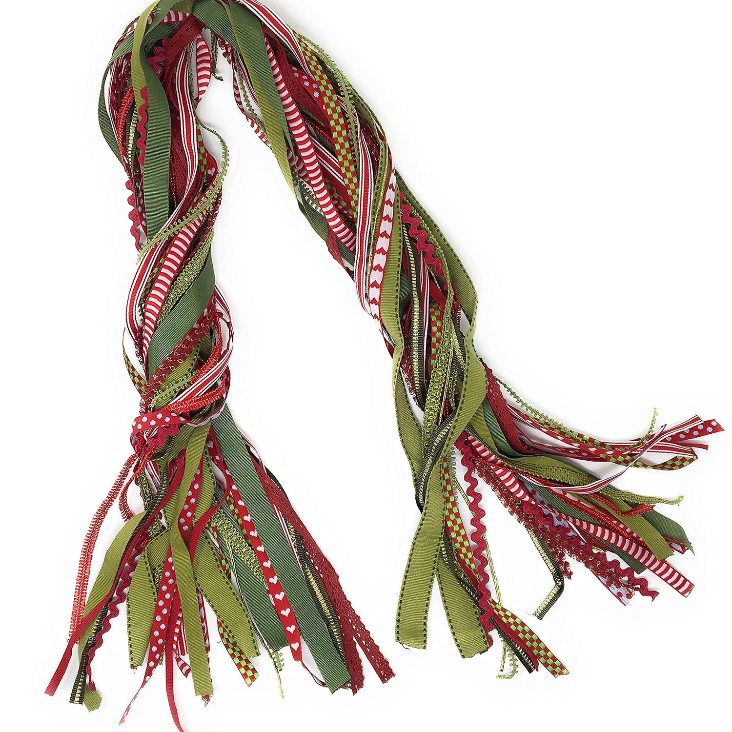 Christmas Ribbons - Assorted Ribbon for Crafts Fabric Ribbon Assortment Variety Pack Holiday Trim Bulk Scraps Bundle 30 Yards