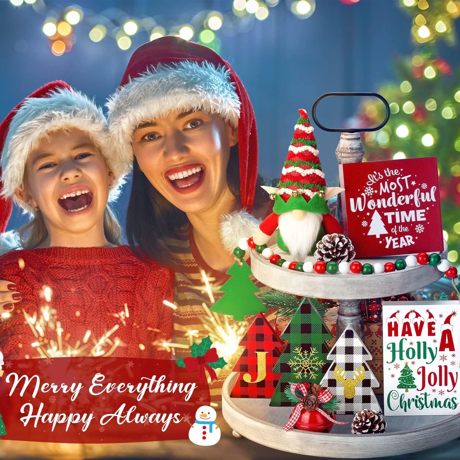 - Christmas Home Decor Ideas & Christmas Gift: This Christmas tiered tray decoration not only is ready to be a must-have item for home, but a personalized gift to touch the heart of the receiver due to the meaningful words & impressive design. The cute gnome plush represents good luck and spreads Christmas spirit, make it a heartwarming & thoughtful gifts for family, friends, neighbors, colleagues as Housewarming Gifts, Christmas gift, Holiday birthday gift to bring them a warm and cozy feeling