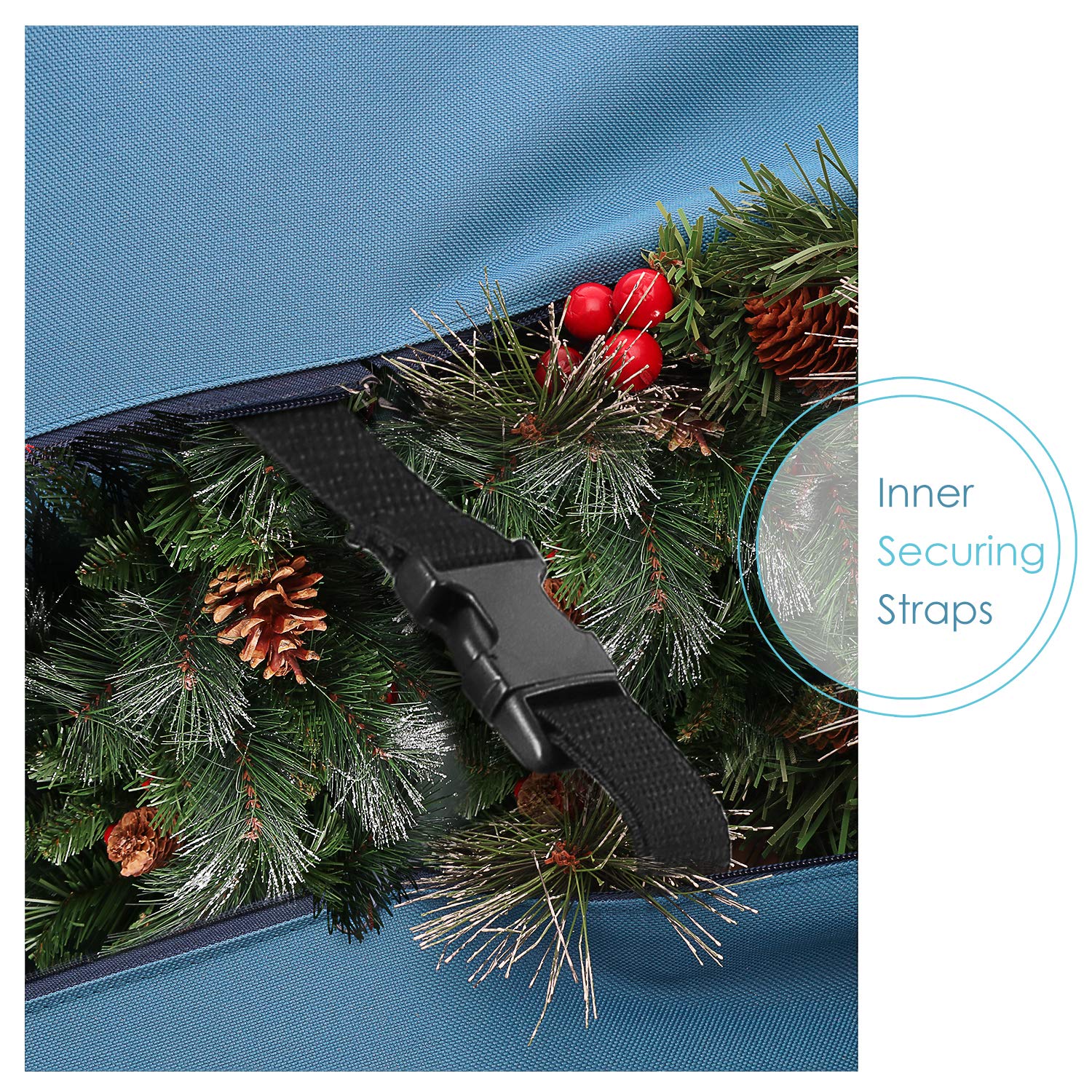 - EASY TO TRANSPORT - Christmas storage tree bags have 3 rubber rear wheels for easy transport; 2 interior adjustable straps with quick-release buckles keep contents secure while storage bag for Christmas tree is being rolled.