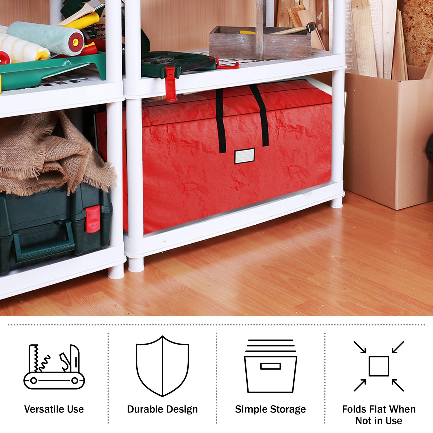 - DURABLE CONSTRUCTION - Each Christmas box is made of woven polypropylene material that is tear-resistant and strong enough to last for years of seasonal use. These rectangular tree bags protect your decorations against dust, insects, and moisture.