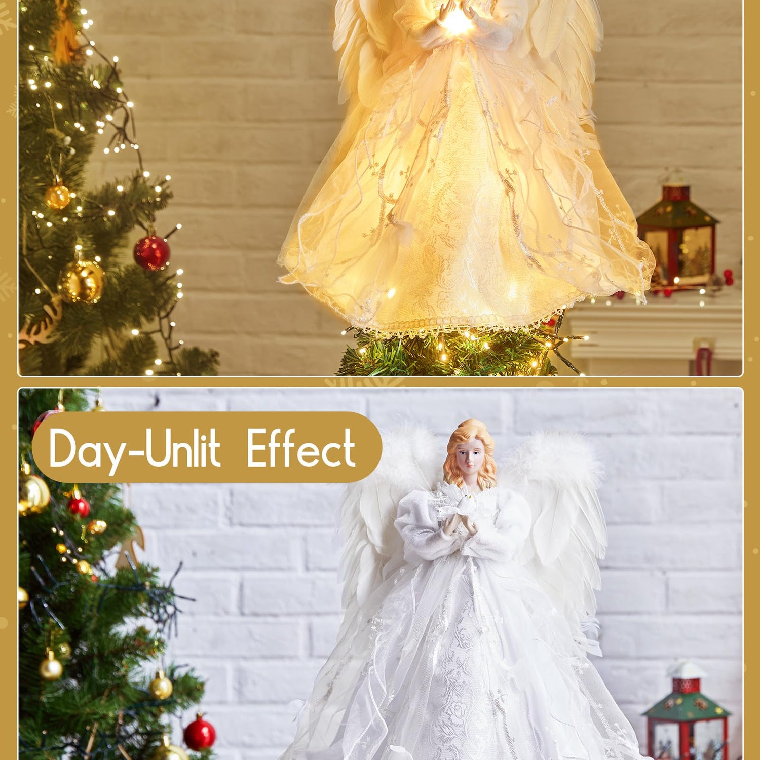 - 【Christmas Angel Tree Top Light】This angel is 16.9 inches high, suitable for 5-10 feet Christmas tree as decoration, also can be placed on tabletop and mantel as decoration, add elegant and luxurious shimmering light to your Christmas.