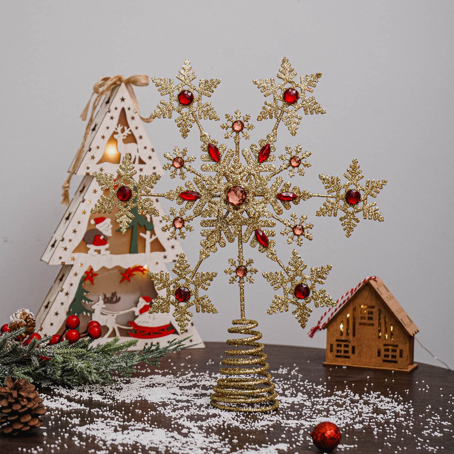 Christmas Tree Topper Indoor Festive Christmas Snowflake Treetop Metal Decoration for Holiday Home Ornament