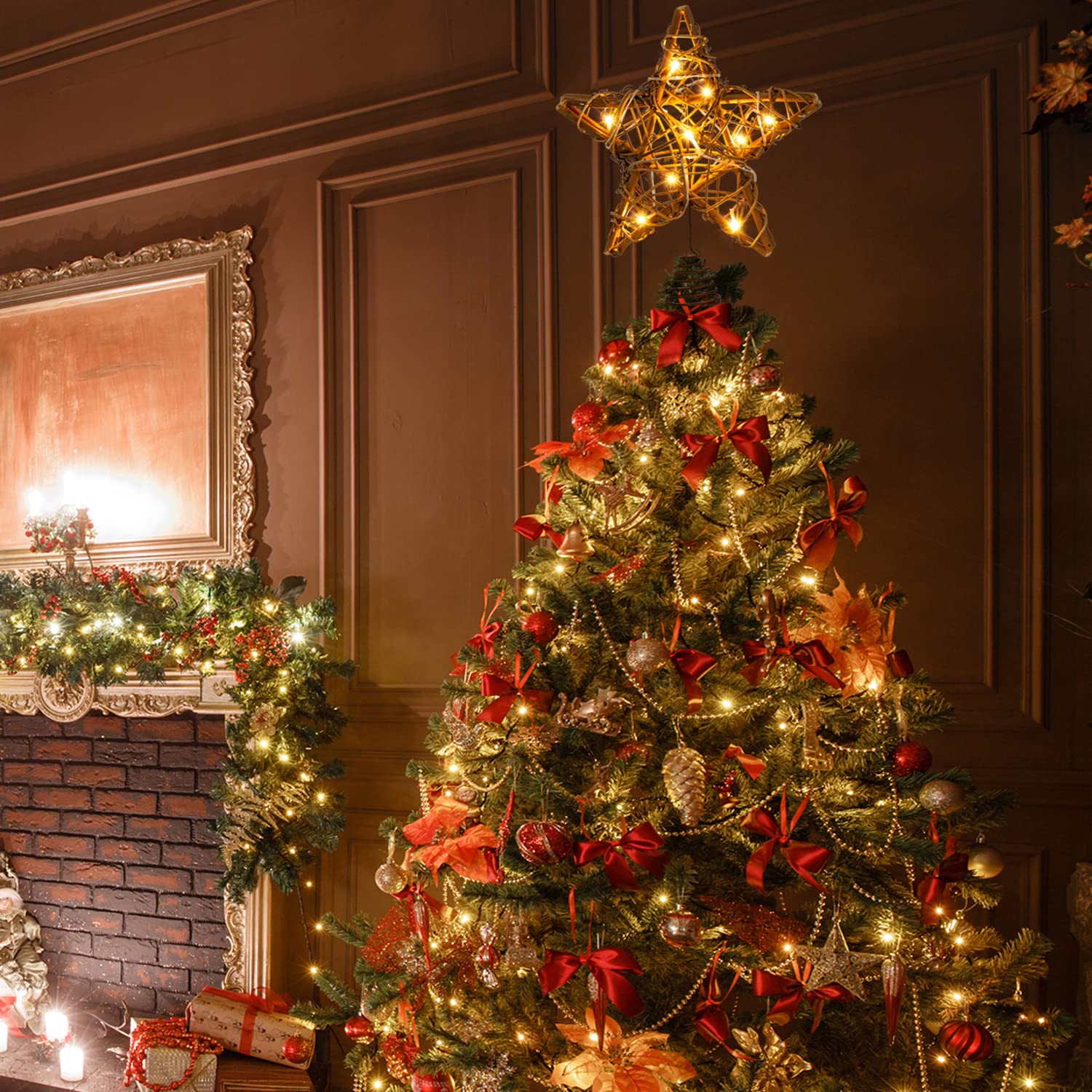 - Led christmas tree topper lighted, five-pointed star hollow double-sided design, 10 led warm white light strings around the top of the star treetop, allowing you to see the light from all angles, bringing a warm and rustic feeling to your home.