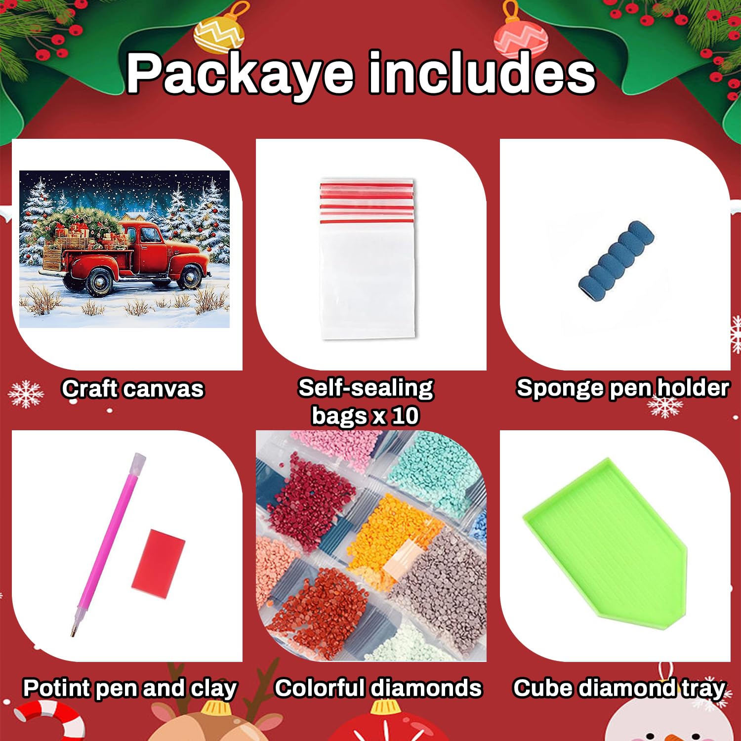 Christmas Truck Diamond Art Kits for Adults - Christmas Truck DIY 5D Diamond Painting Kit for Adults Home Decor Crafts - 12x16Inch