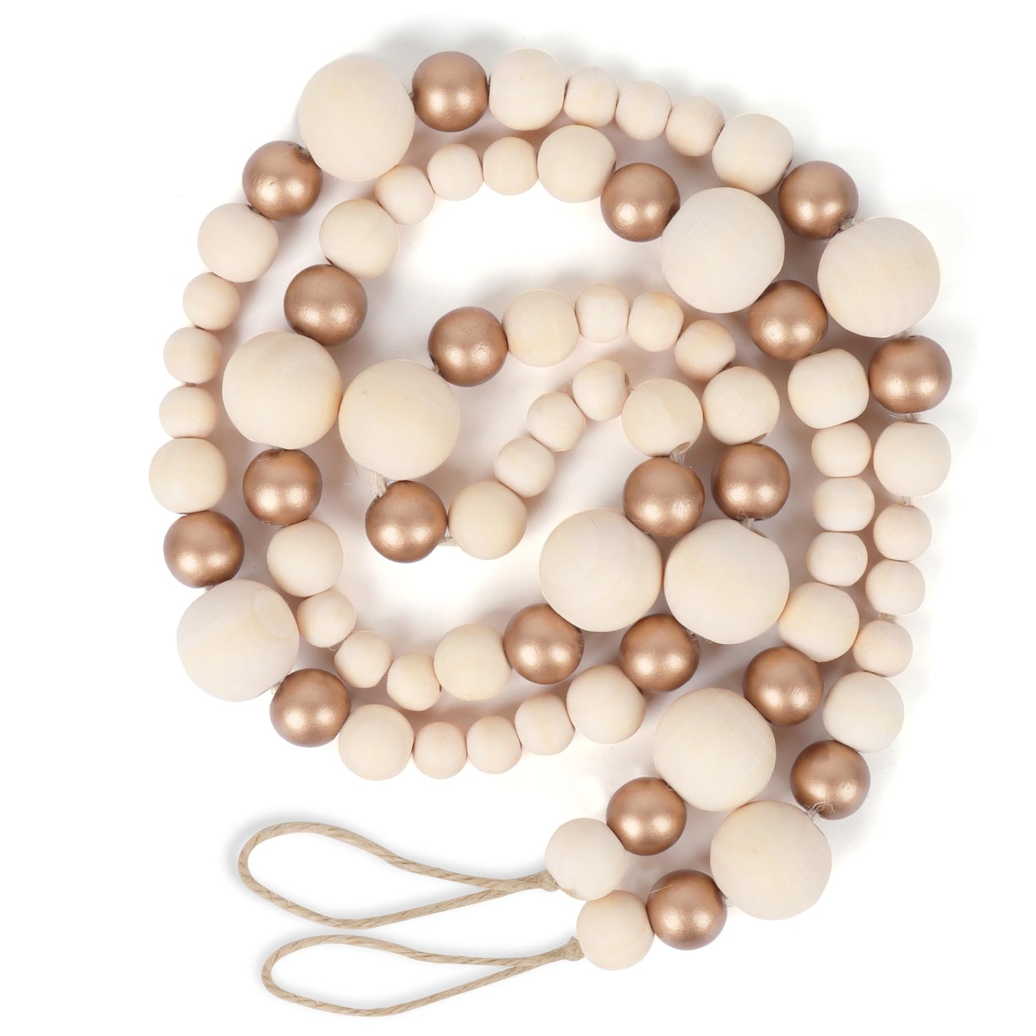 - Well Designed: Each wood garland for christmas tree is consist of gold and natural wooden beads,loops on both ends for easy hanging and securing to your tree branches,connect two or more wood bead tree garland together for desired lengths