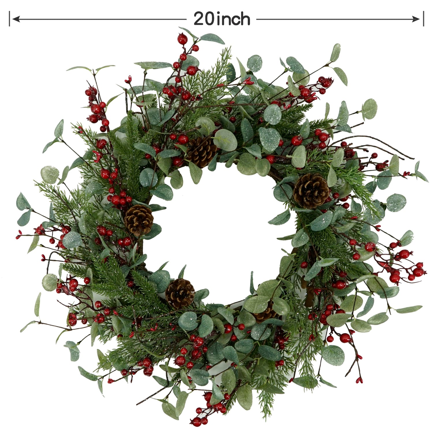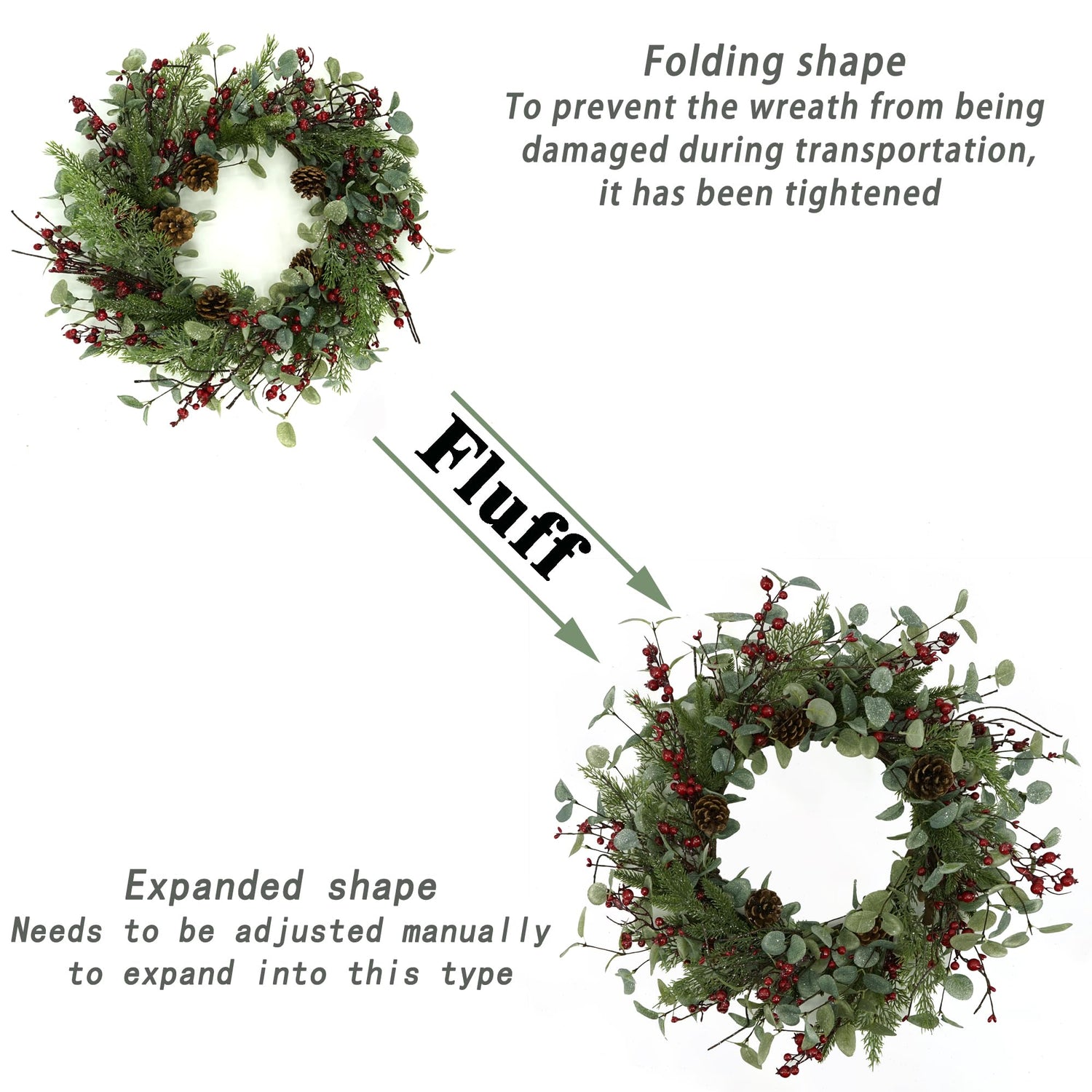 - Pine Needle Berry Front Door wreath: The sparkling pine needle wreath with plump pinecones and berries, red berries and plump pinecones make the workmanship of this season's garland more meaningful and precious. The whole garland looks more colorful and layered at Christmas.