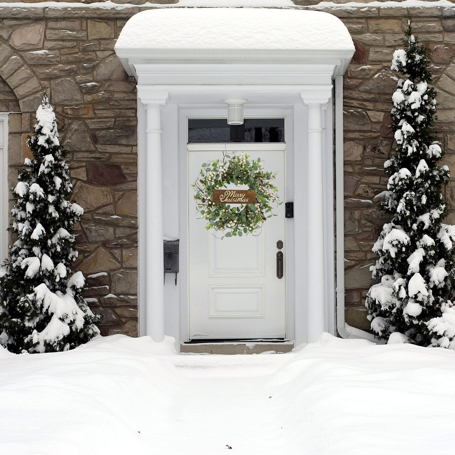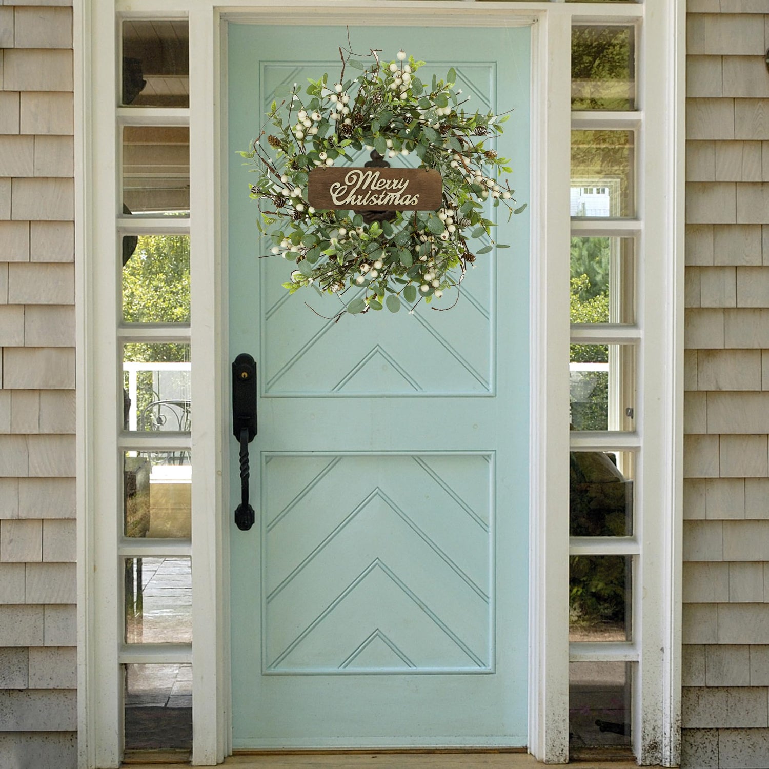 Christmas Wreath, Christmas Wreaths for Front Door, Winter Eucalyptus Wreath with Pine Cone and White Berry Wreath for Indoor Outdoor Farmhouse Wall Window Home Decoration.