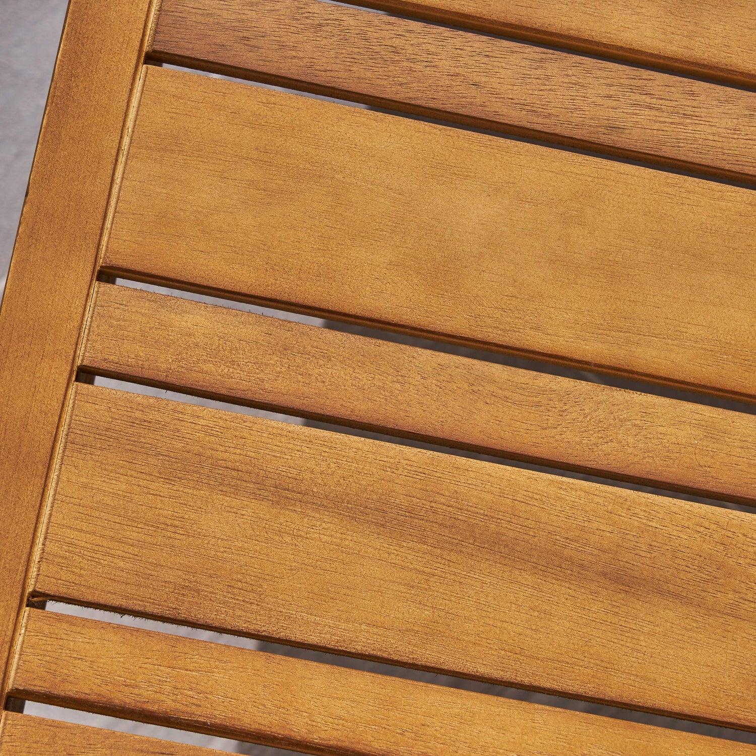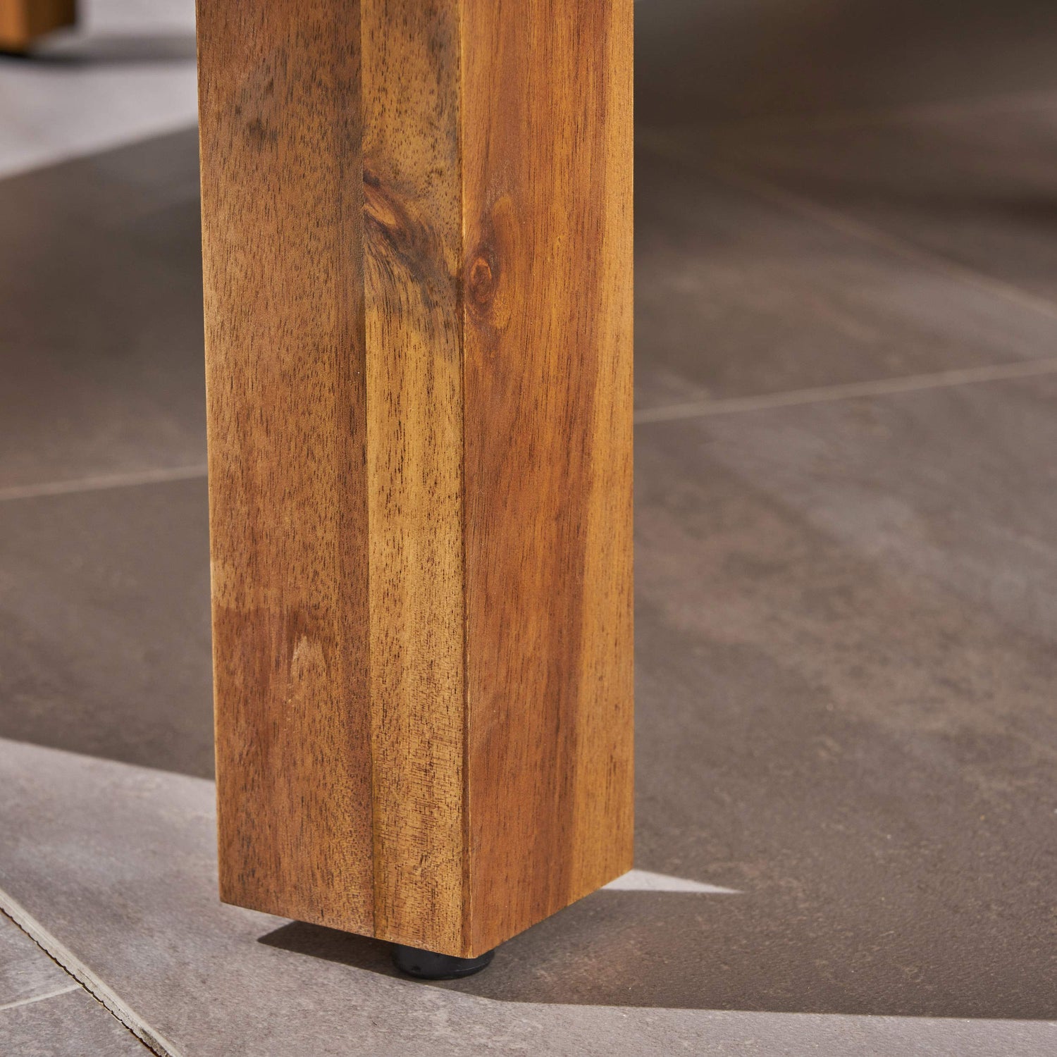 - Acacia Wood: Made with acacia wood that brings a sleek and exotic look to your space, this durable hardwood naturally withstands outdoor elements and will not darken over time. Acacia wood is perfect as a solid, heavy frame that resists wear and tear.