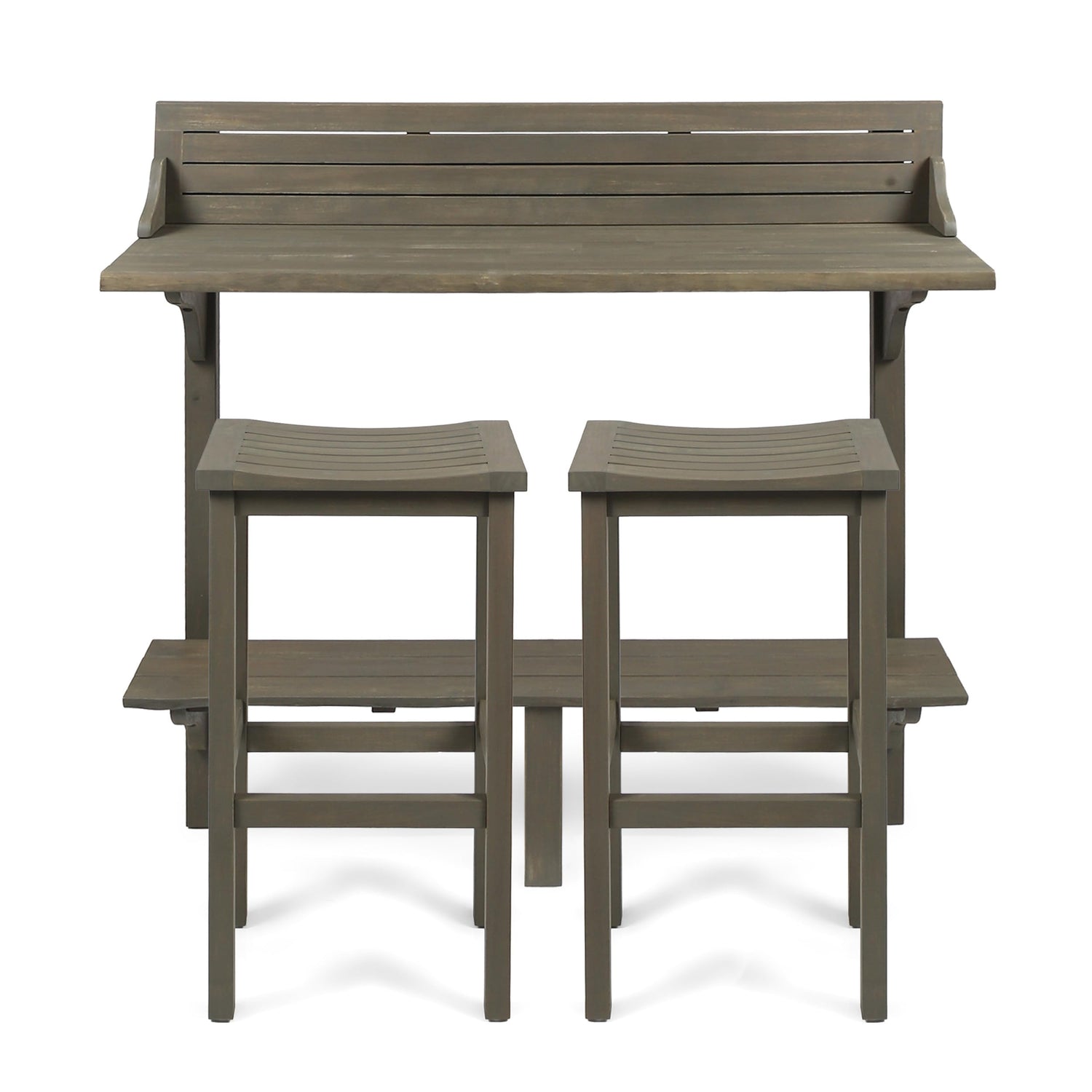 Christopher Knight Home Caribbean Outdoor Acacia Wood Balcony Bar Set, 3-Pcs Set, Grey Finish