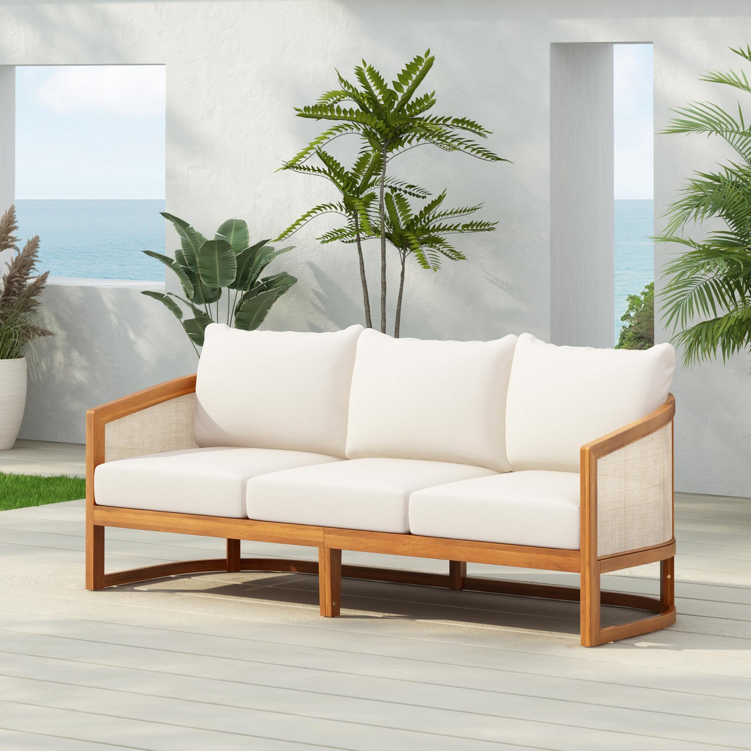 - Acacia Wood Outdoor Modular Sofa: Made from high-quality acacia wood, valued for its rich color and natural weather resistance. This solid hardwood construction ensures durability, strength, and an inviting warmth that complements any outdoor space