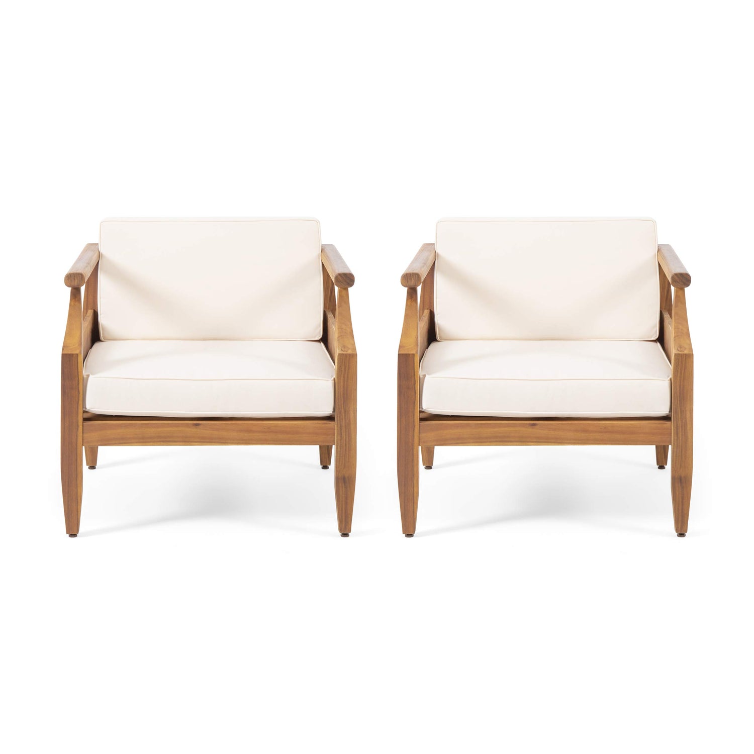 Christopher Knight Home Daisy Outdoor Club Chair with Cushion (Set of 2), Teak Finish, Cream