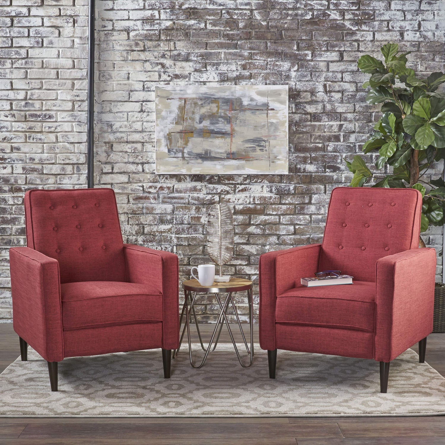 Christopher Knight Home GDFStudio Christopher Knight Home Mervynn Mid-Century Modern Fabric Recliners, 2-Pcs Set, Red / Dark Espresso