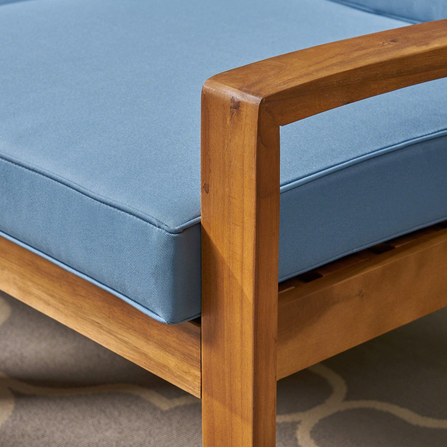 Christopher Knight Home Grenada Sectional Sofa Set | 5-Piece 3-Seater | Includes Coffee Table and Ottoman | Acacia Wood Frame | Water-Resistant Cushions | Teak and Blue, Finish