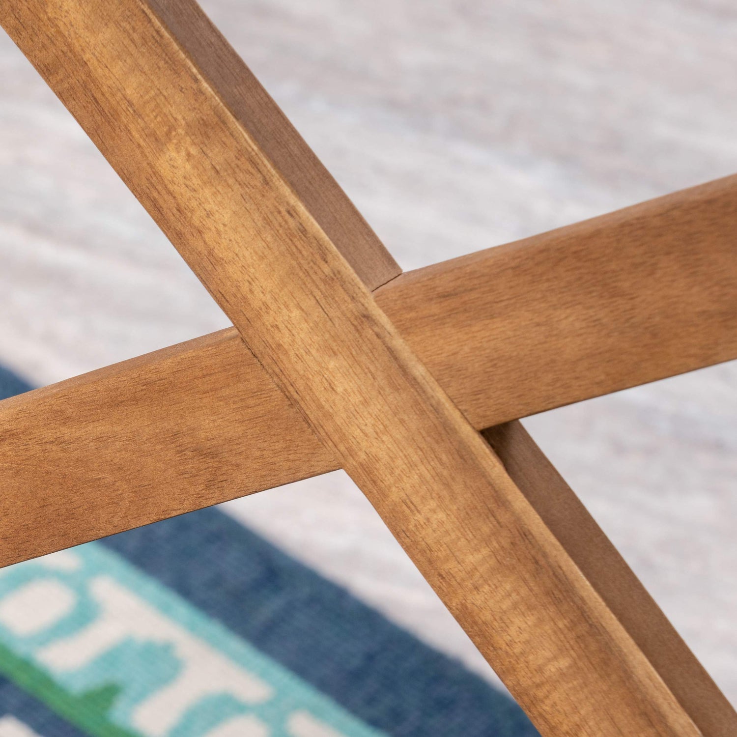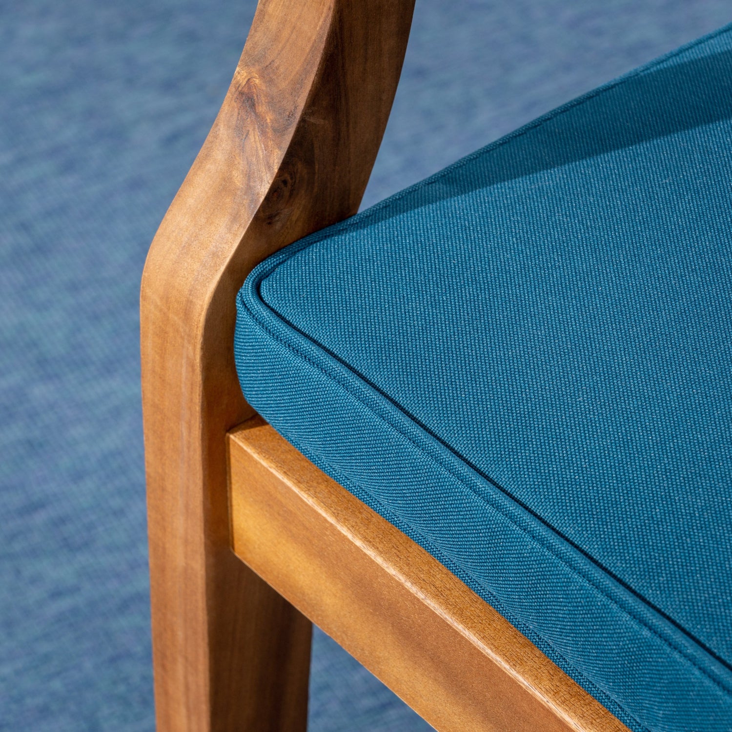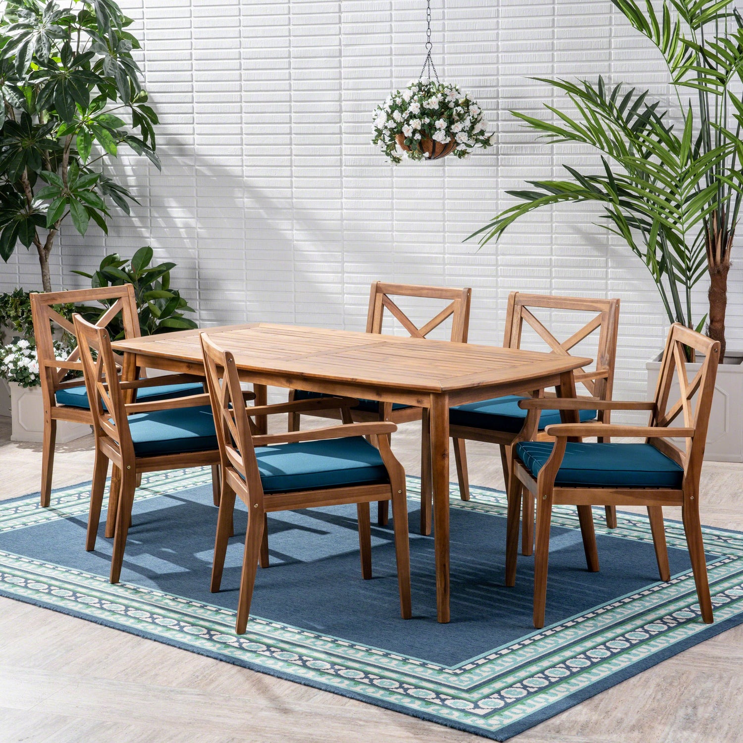 Christopher Knight Home Harvey Outdoor 7 Piece Acacia Wood Dining Set, Teak Finish/Blue