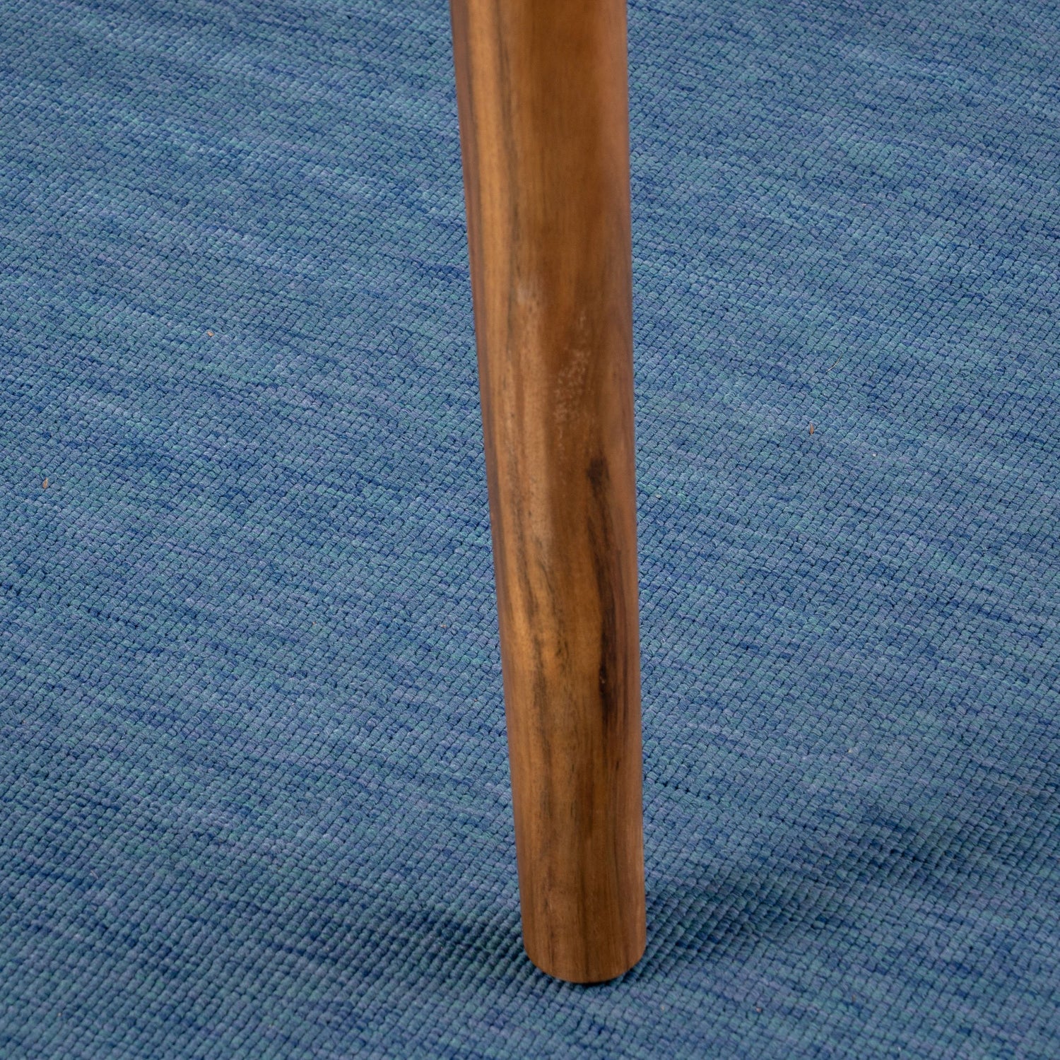 - Fabric Composition: 100% Polyester. Cushion Color: Blue. Wood Finish: Teak