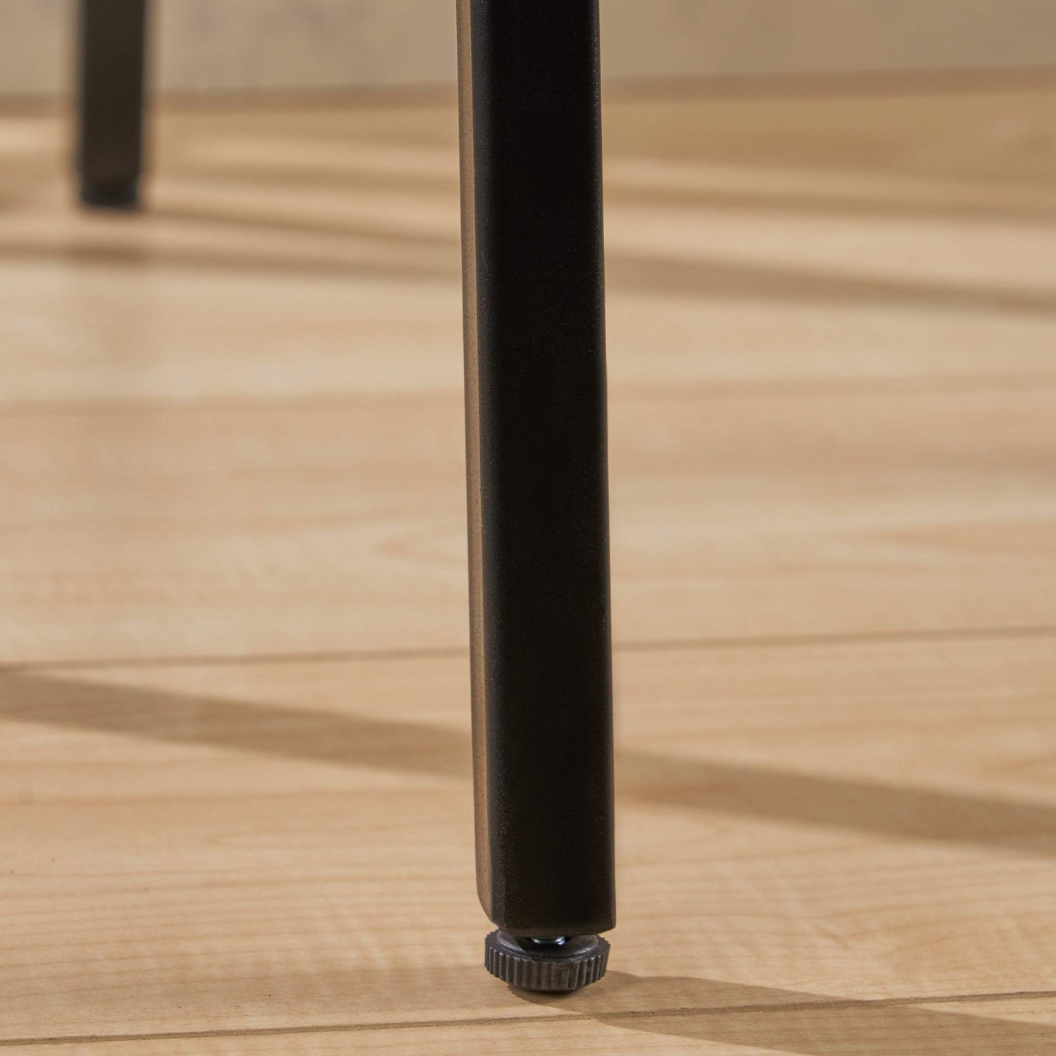 - Chic and modern - Tapered Black legs and foot rails Complement an angular, square Acacia wood seat polished to a gorgeous sheen