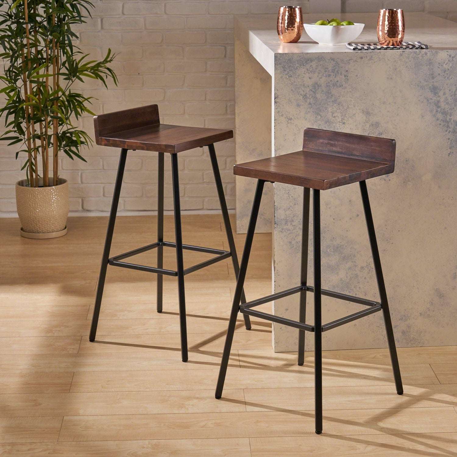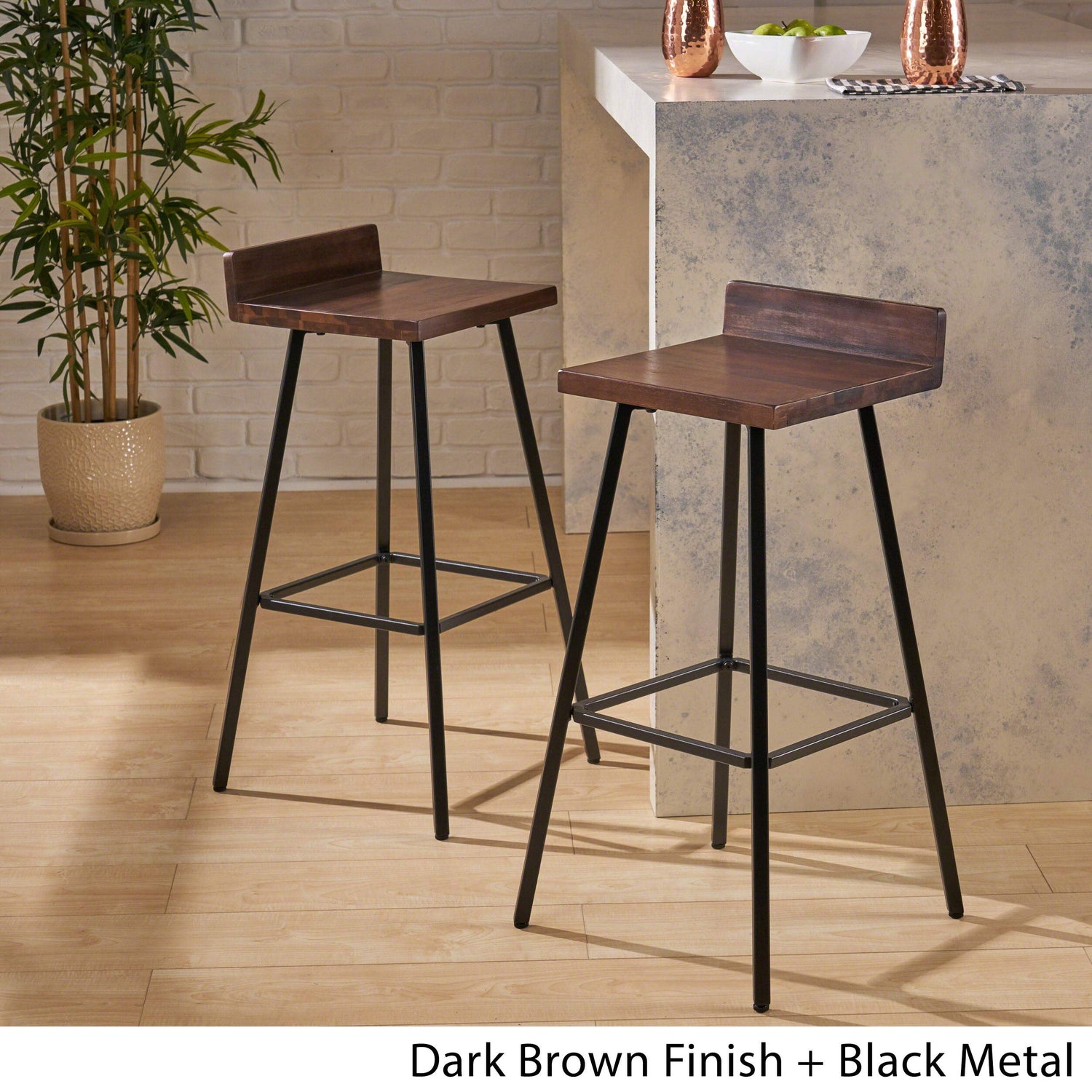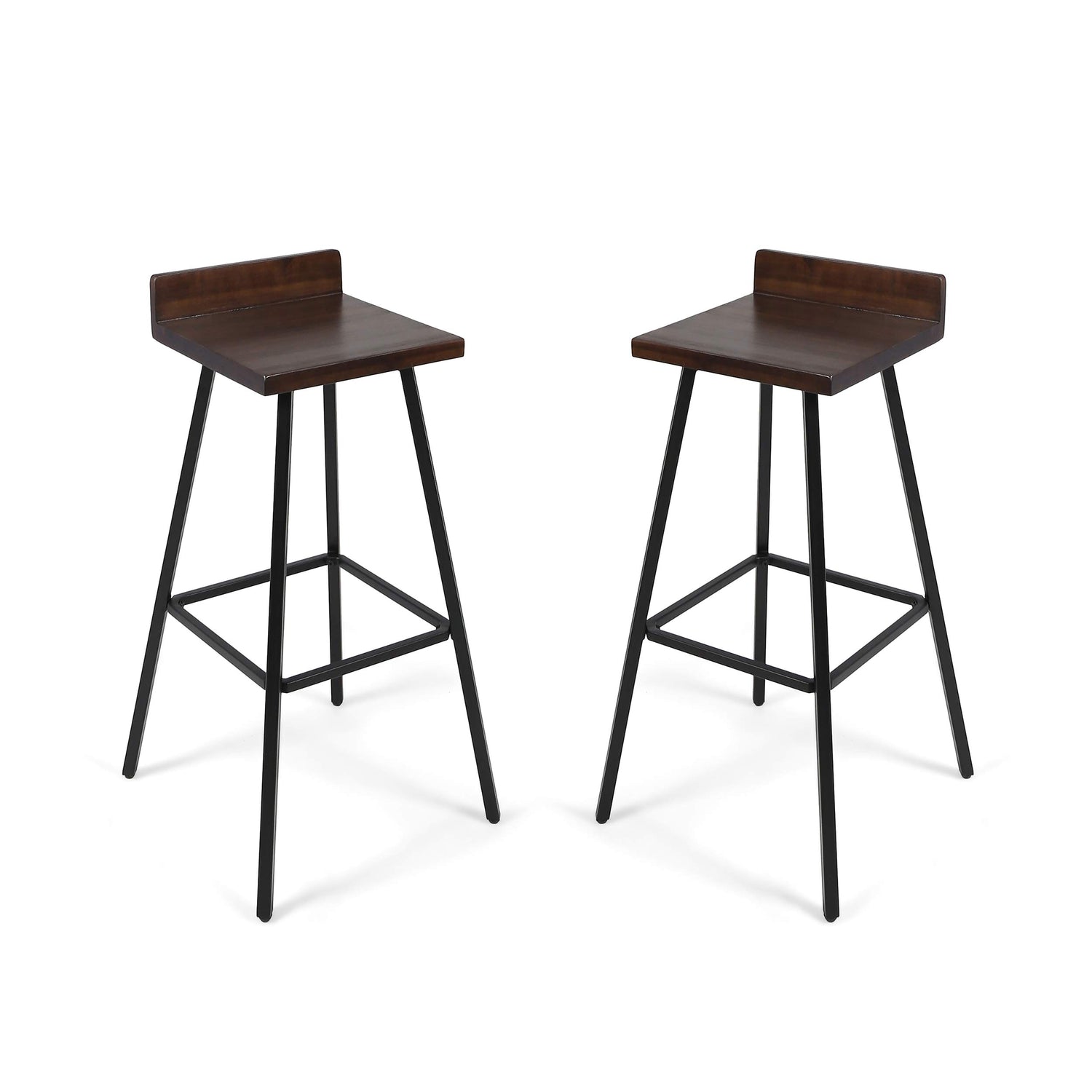 Details: No matter what your style happens to be, This sleek pair of acacia wood and iron bar stools exude class and add a sense of upscale appeal to any room or living area. leg material: Iron leg finish: Black .